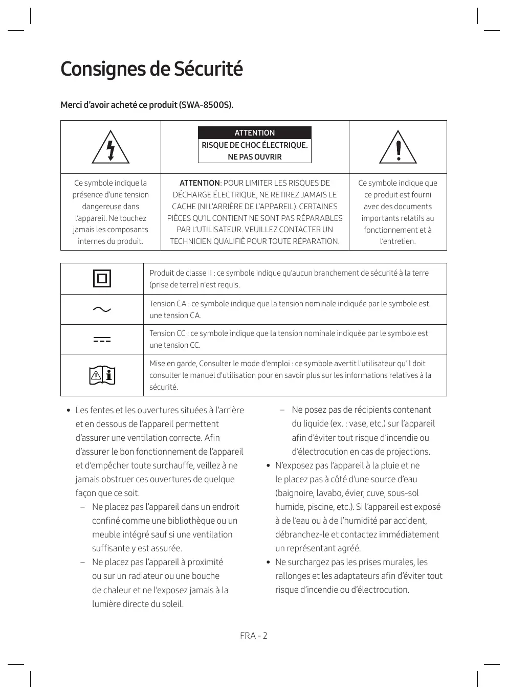 ![]() | ATTENTIONRISQUE DE CHOC ÉLECTRIQUE.NE PAS OUVRIR | ![]() |