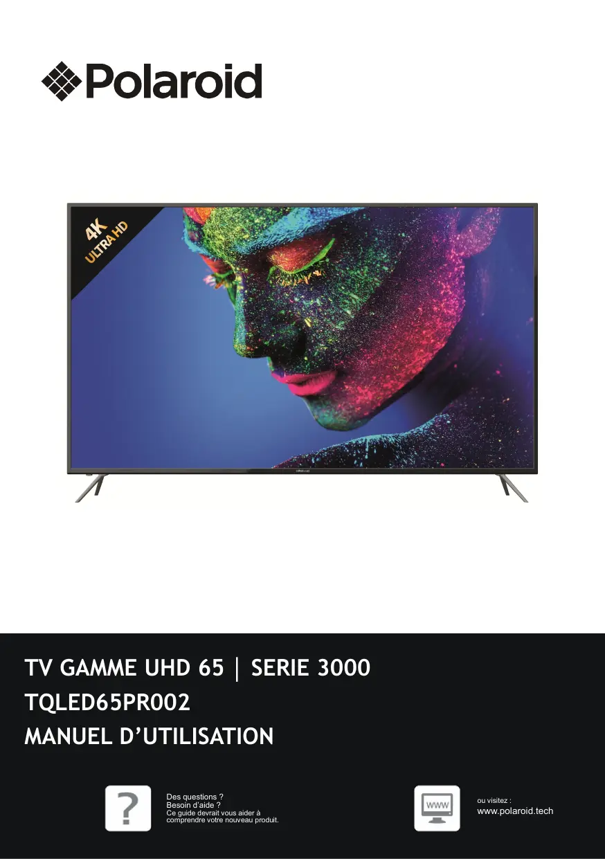 TQLED65P Série 3000 - TV 4K POLAROID - Notice d'utilisation et mode d'emploi gratuit