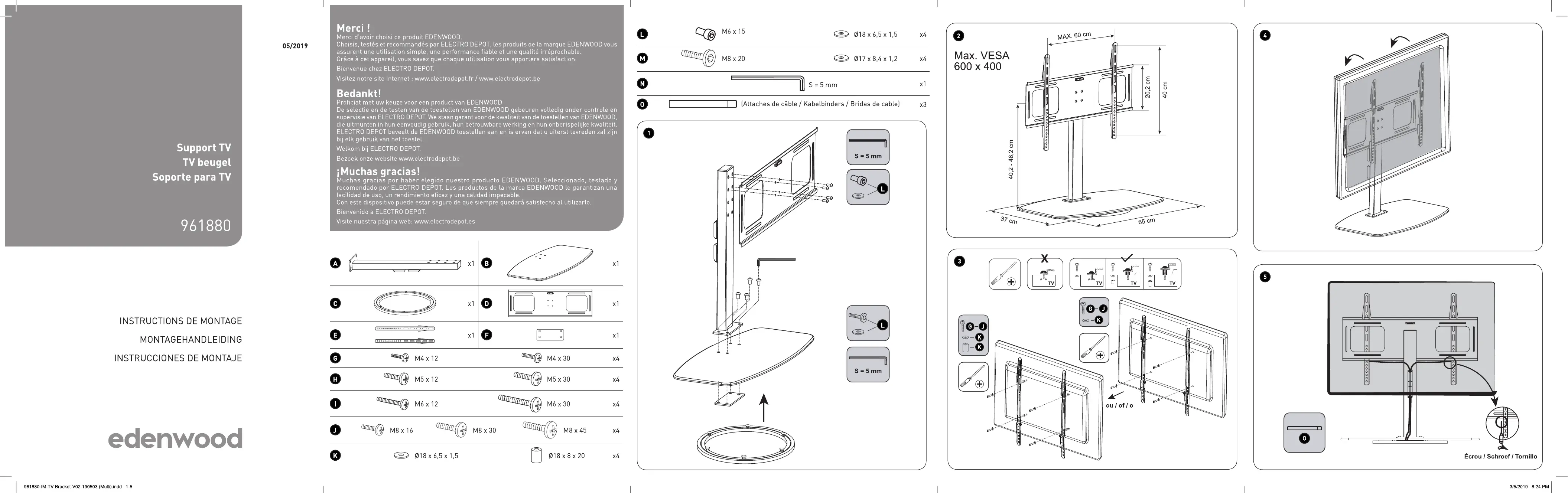 Retrouvez gratuitement la notice de l'appareil Support pied TV EDENWOOD au format PDF.