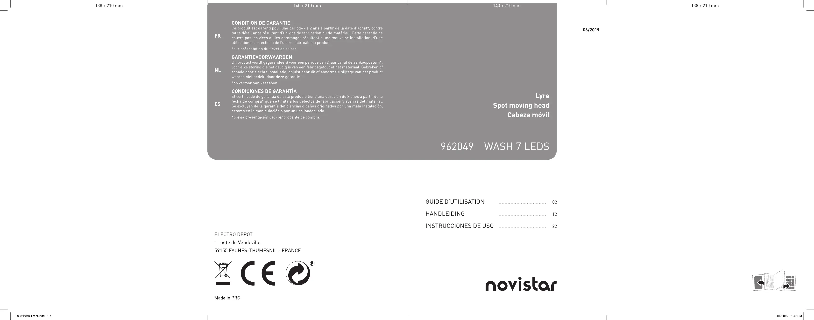 Retrouvez gratuitement la notice de l'appareil WASH 7 LEDS NOVISTAR au format PDF.