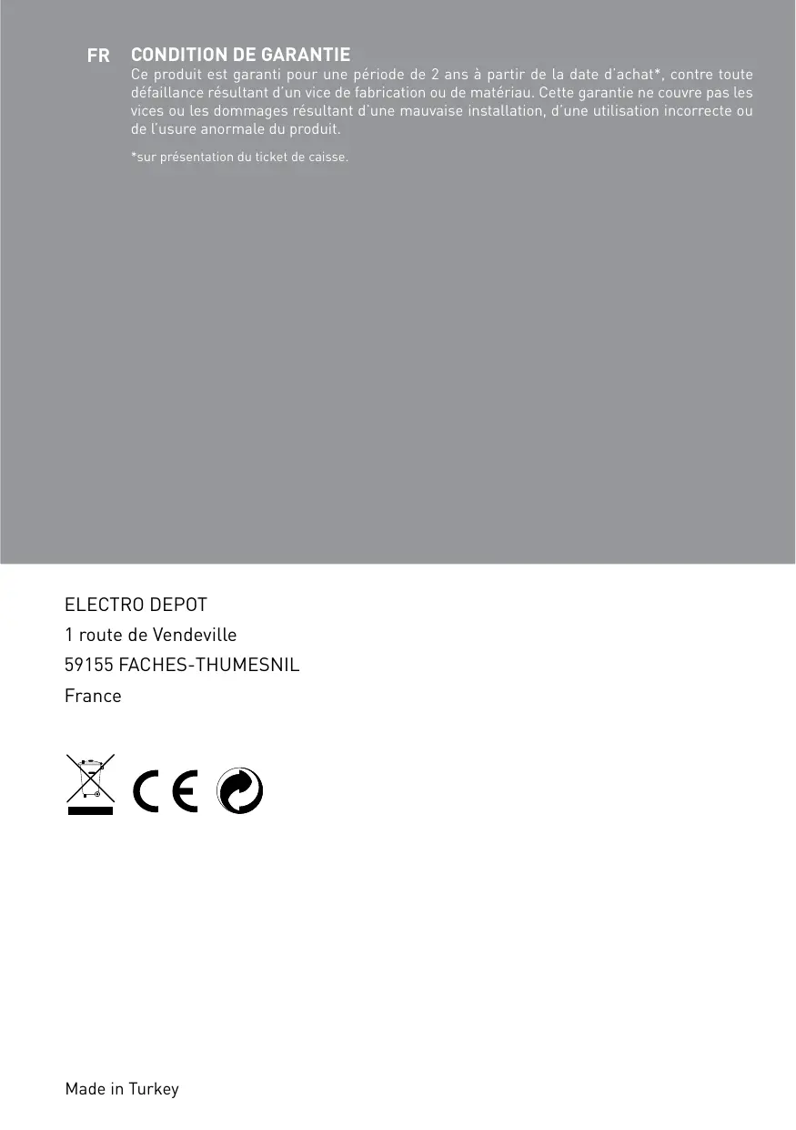 Les notices sont aussi disponibles sur Le site http://www.electrodepot.fr/sav/notices/ http://www.electrodepot.be/fr/sav/notices