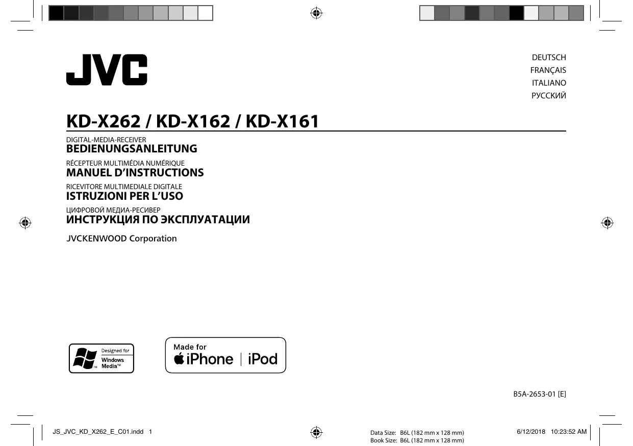 Téléchargez la notice de votre Autoradio au format PDF gratuitement ! Retrouvez votre notice KD-X262 - JVC et reprennez votre appareil électronique en main. Sur cette page sont publiés tous les documents nécessaires à l'utilisation de votre appareil KD-X262 de la marque JVC.