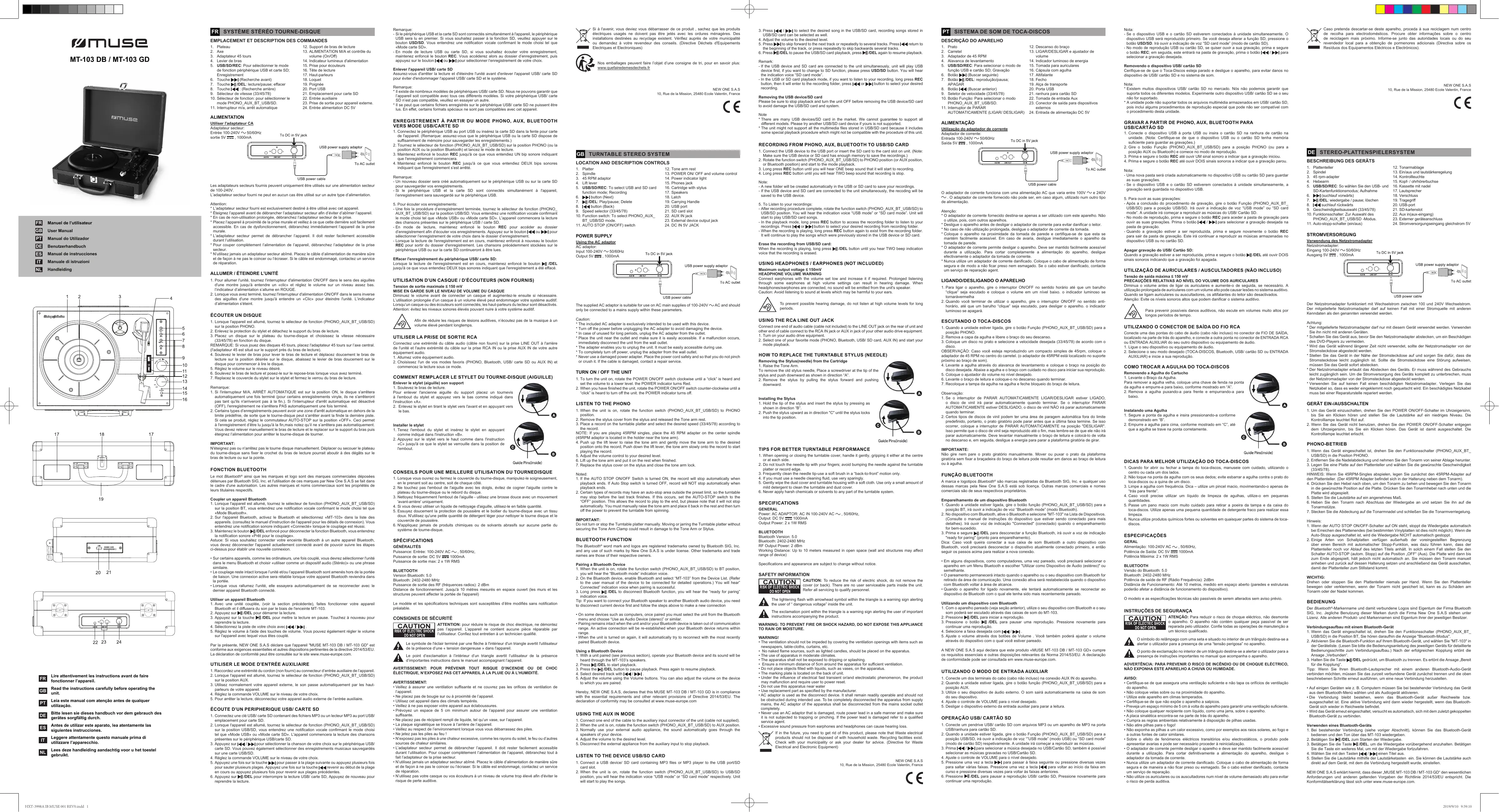 MT-103 GD - Platine Tourne Disques MUSE - Notice d'utilisation et mode d'emploi gratuit