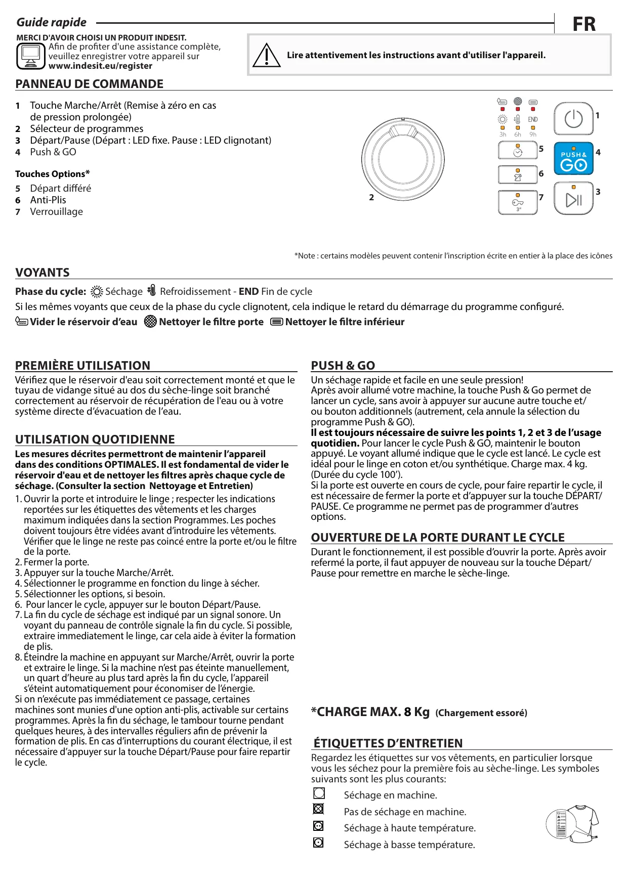B YT CM08 8B EU - Sèche-linge INDESIT - Notice d'utilisation et mode d'emploi gratuit