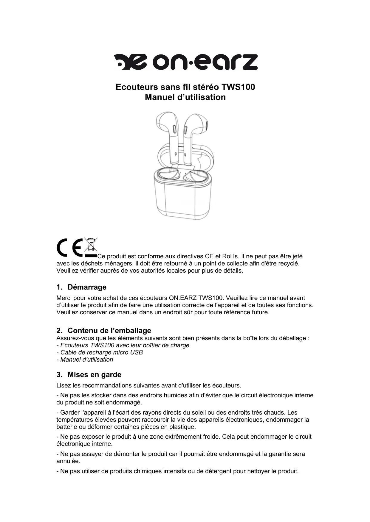 MODE D'EMPLOI TWS SPTWS100 ONEARZ