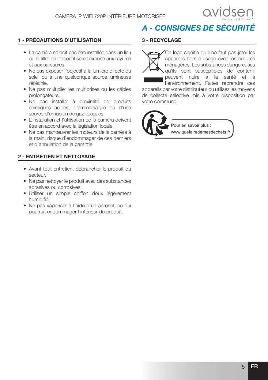 MODE D'EMPLOI CAMERA SÉCURITÉ INTÉRIEURE MOTORISÉE AVIDSEN