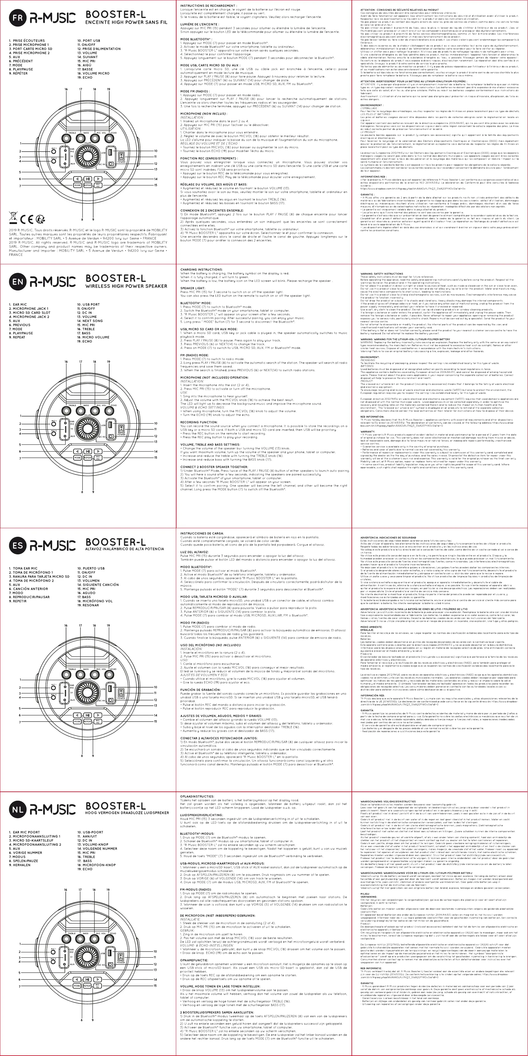 3.'R Male BOOSTER L apparaitra sut voire cran aerês auelaues secondes 2: Sétectionnez-le pour contirmer $. Ampuyez longuement sur Le Bouton MODE 7) pendant 3 secondes pour déconnecter le Blvetocth. MODE USB, CARTE MICRO SD OU AUX osquune carte mere SD, une clé USB qu câble jack est b sulemaliavement en mode lecture de musiaue 2: Appuyez SU PLAY / PAUSE () pour are pause. Appuyez à nouveau pour relance a iciure 5 Appuyez sur PA ) où SUIVAN ur changer de pi 2: Appuyez sur MODE MICRO SD, AUX FM où Bluetosine ée à l'enceinte, celle-ci passe MODE FM (RADIO) Appuyez sur MODE (7) pour passer en made rad.