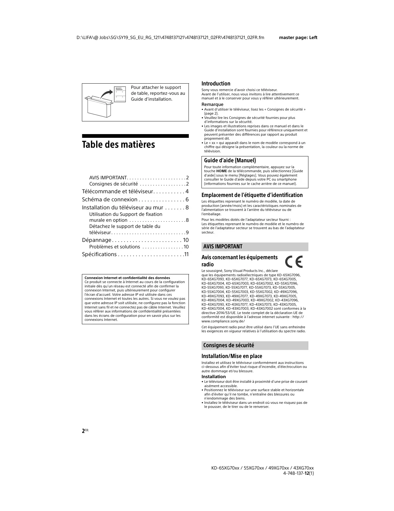 MODE D'EMPLOI KD55XG7005 SONY