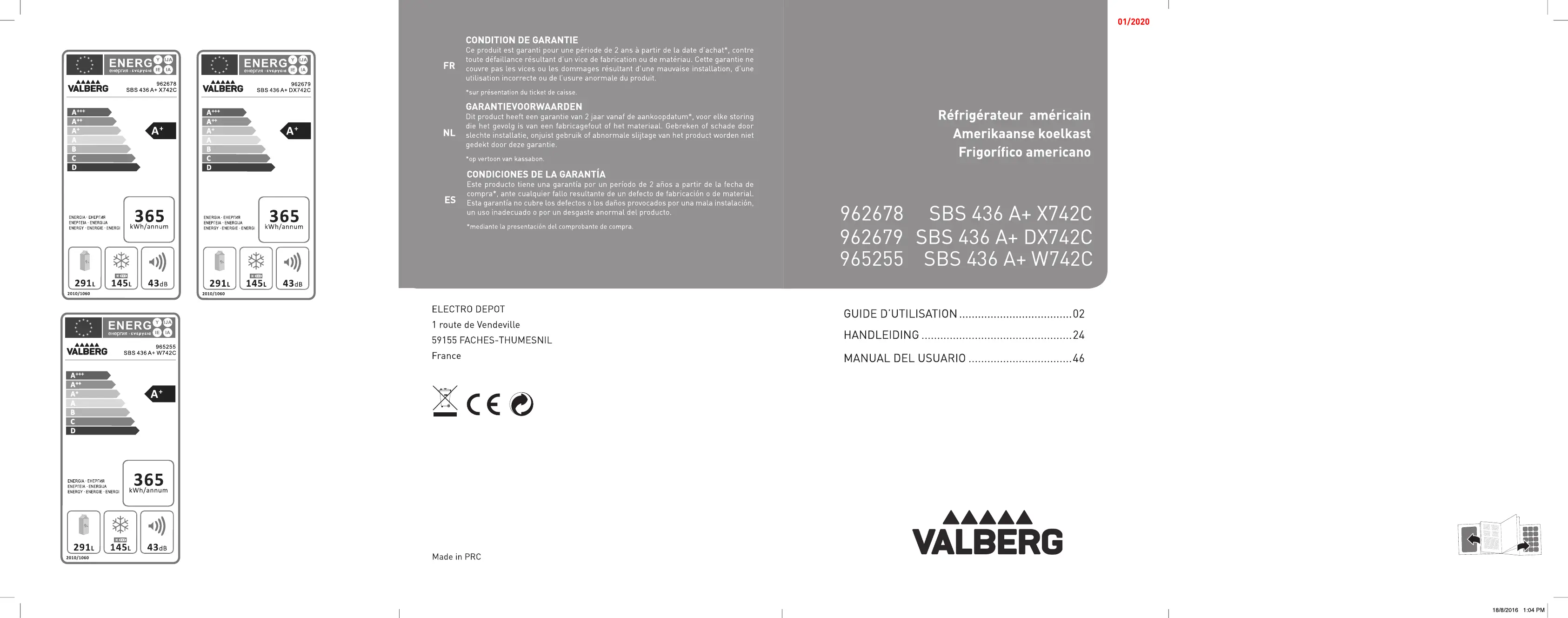 MODE D'EMPLOI SBS 436 A+ W742C VALBERG