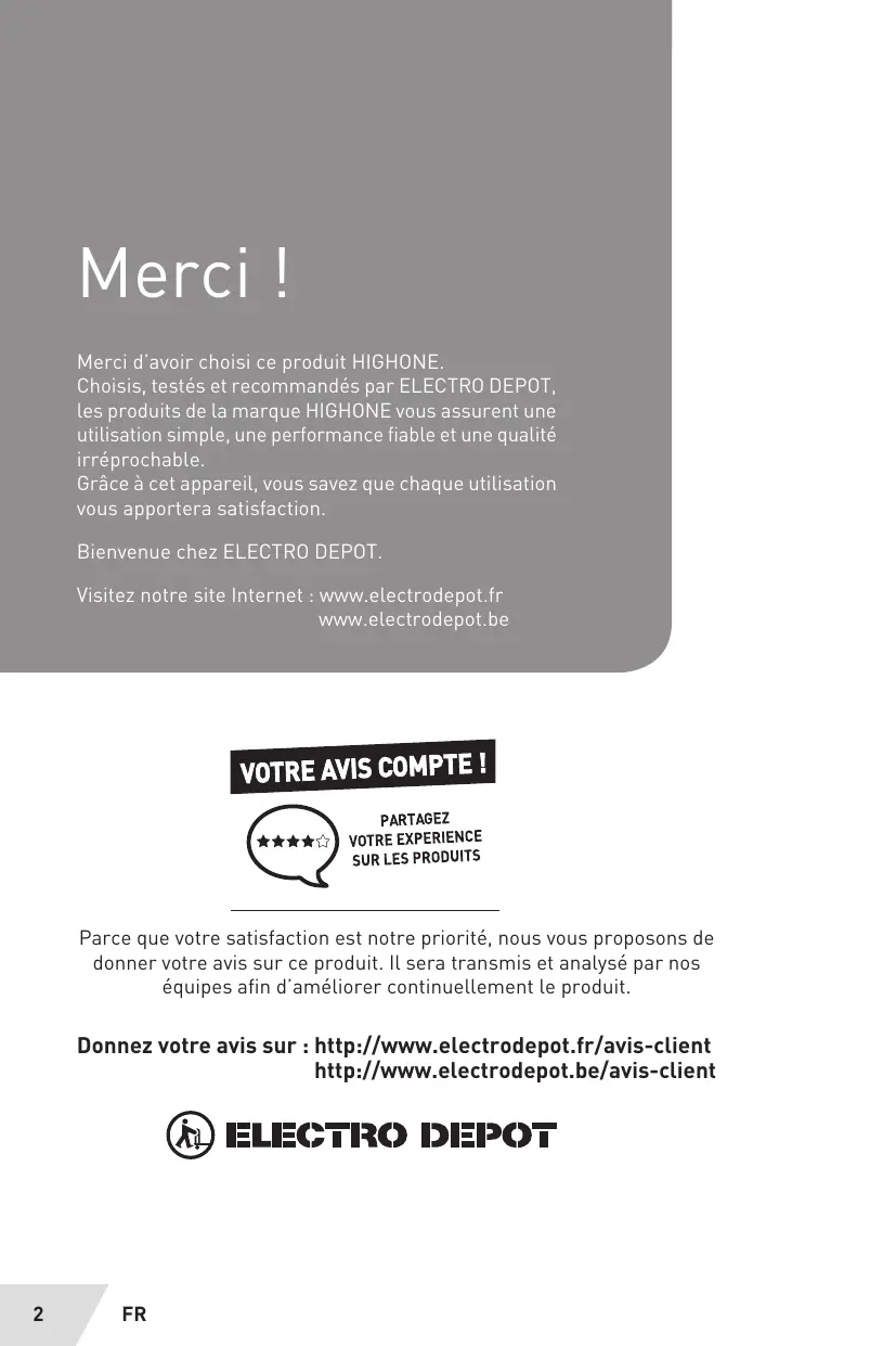 Choisis, testés et recommends par ELECTRO DEPOT, les produits de la marque HIGHONE vous assuret une utilisation simple, une performance fiable et une qualité irréprochable.