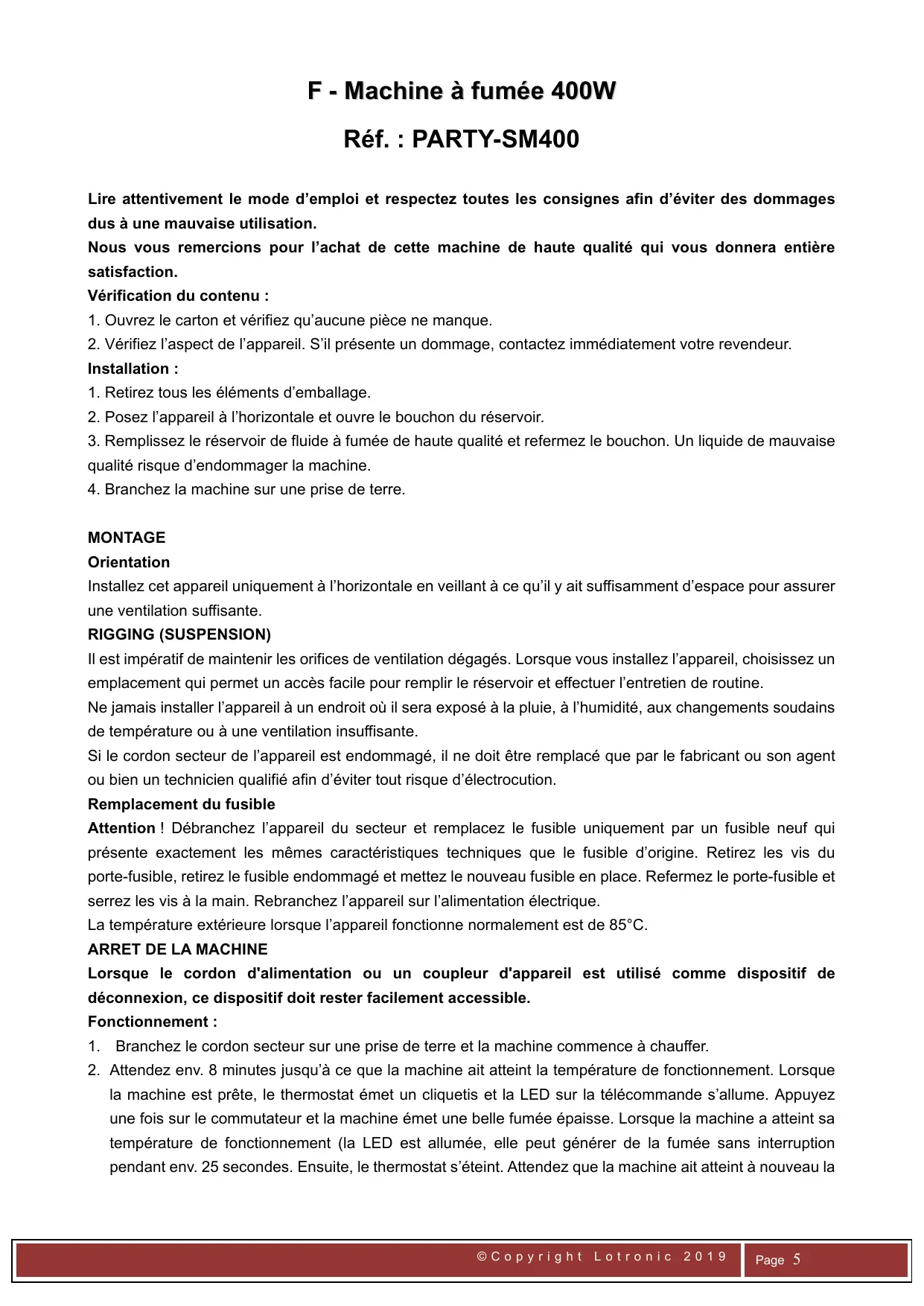 400W - Machine à fumée PARTY LIGHT&SOUND - Notice d'utilisation et mode d'emploi gratuit