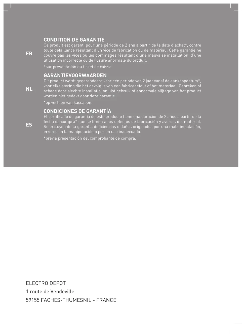CONDITION DE GARANTIE Ce produit est garanti pour une période de