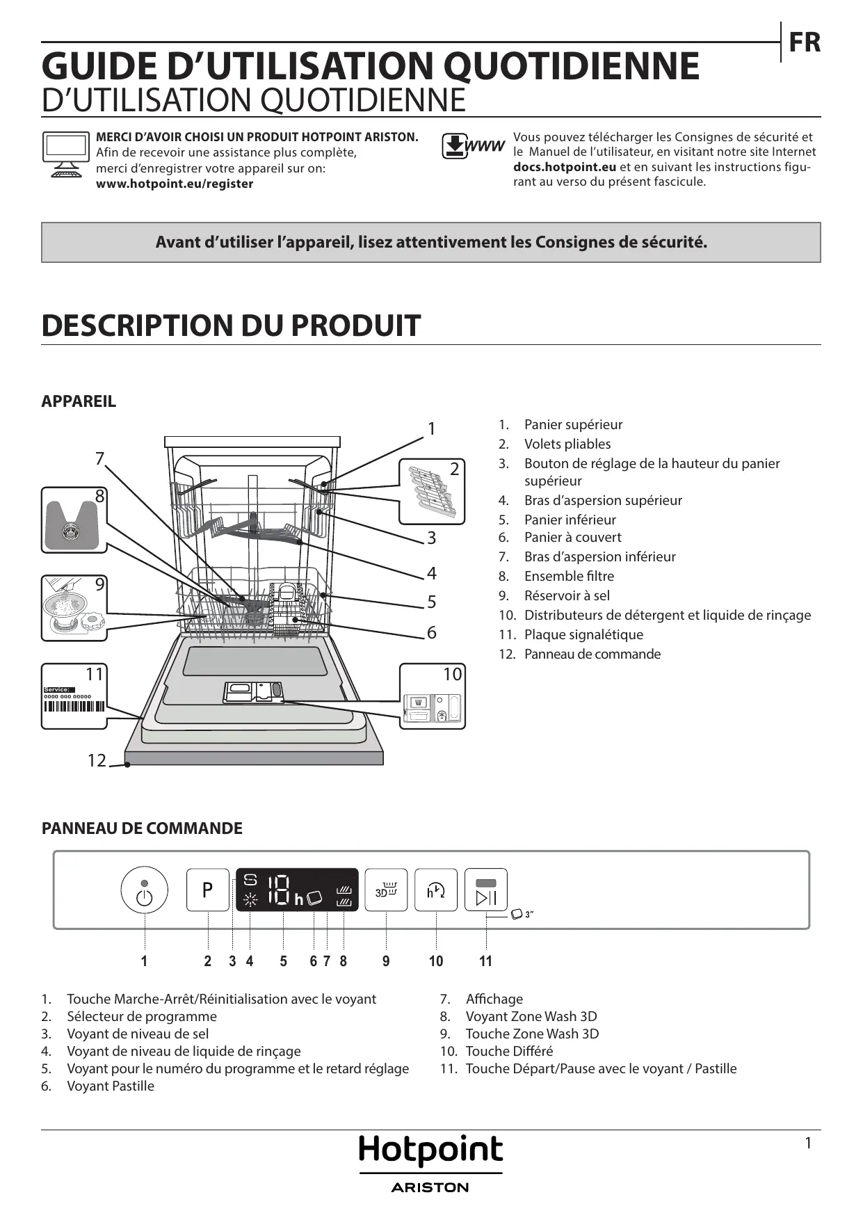 HIC3C41CW - Lave-vaisselle HOTPOINT - Notice d'utilisation et mode d'emploi gratuit