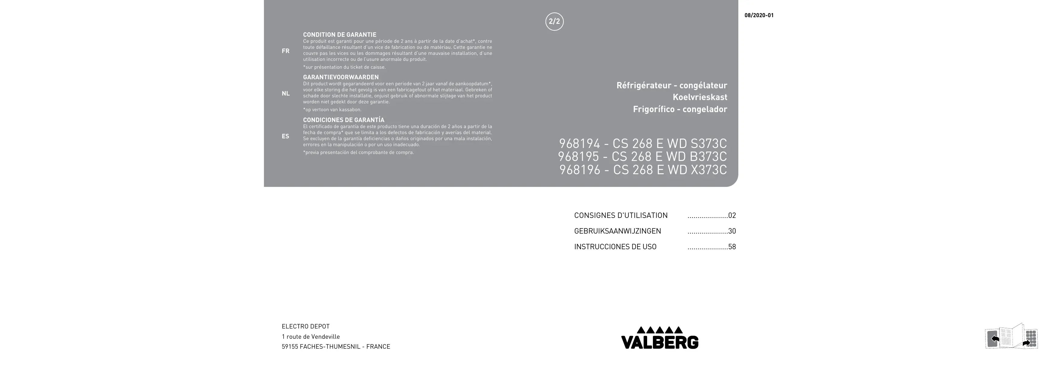 Retrouvez gratuitement la notice de l'appareil CS 268 E WD S373C VALBERG au format PDF.