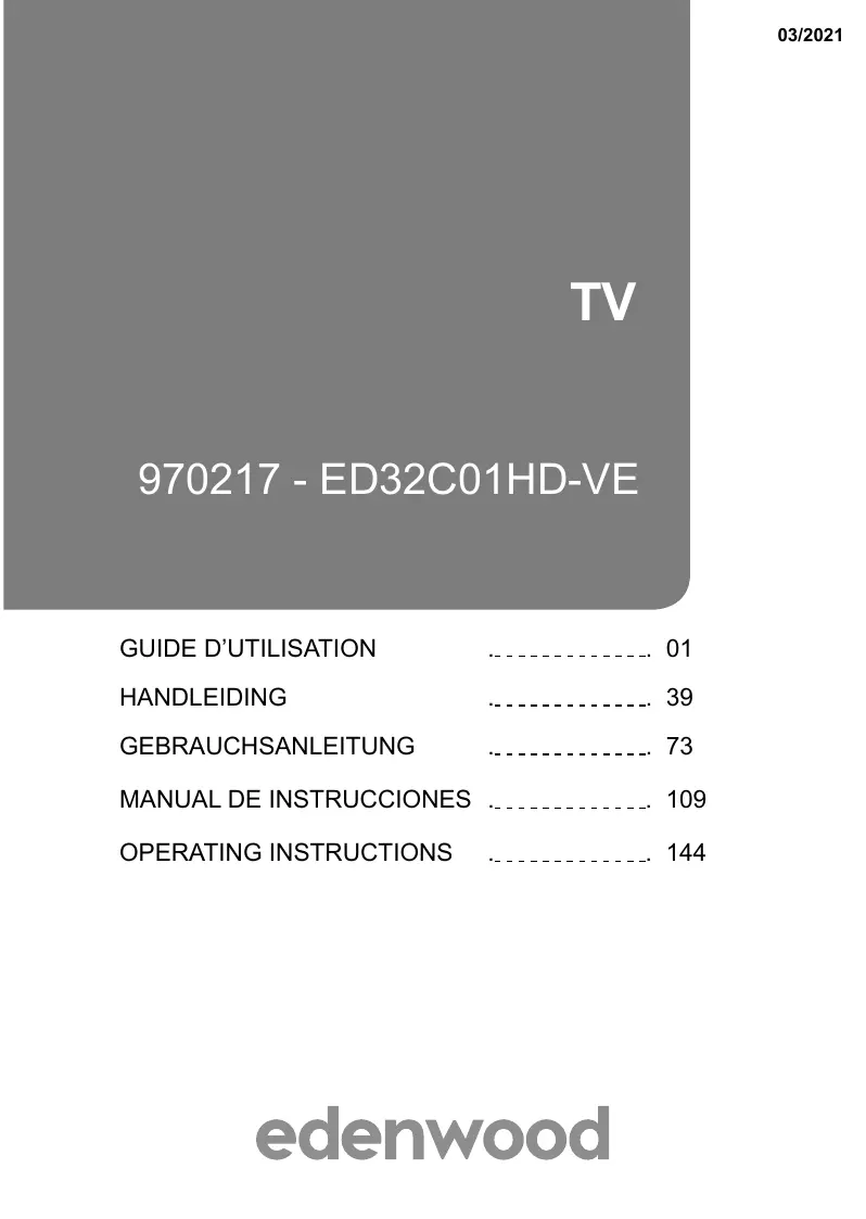 Retrouvez gratuitement la notice de l'appareil ED32C02HD-VE EDENWOOD au format PDF.