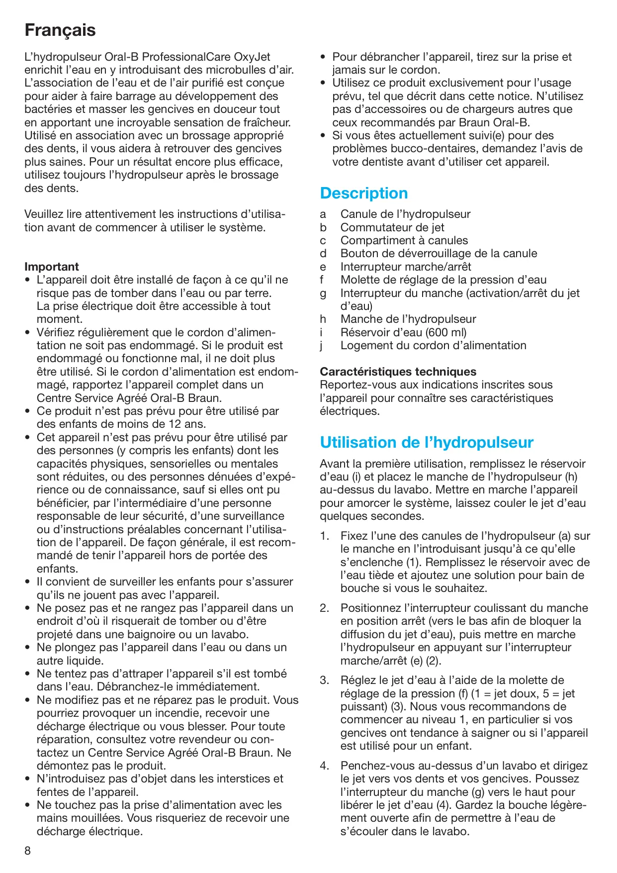 STATION MULTIJET - Jet dentaire ORAL-B - Notice d'utilisation et mode d'emploi gratuit