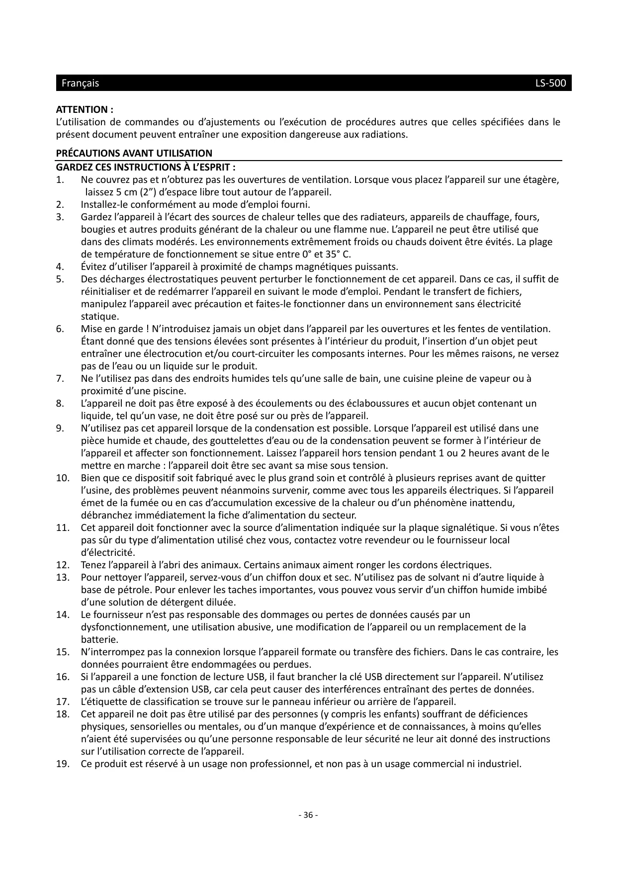 19. Ce produit est réservé à un usage non professionnel, et non pas à un usage commercial ni industriel.