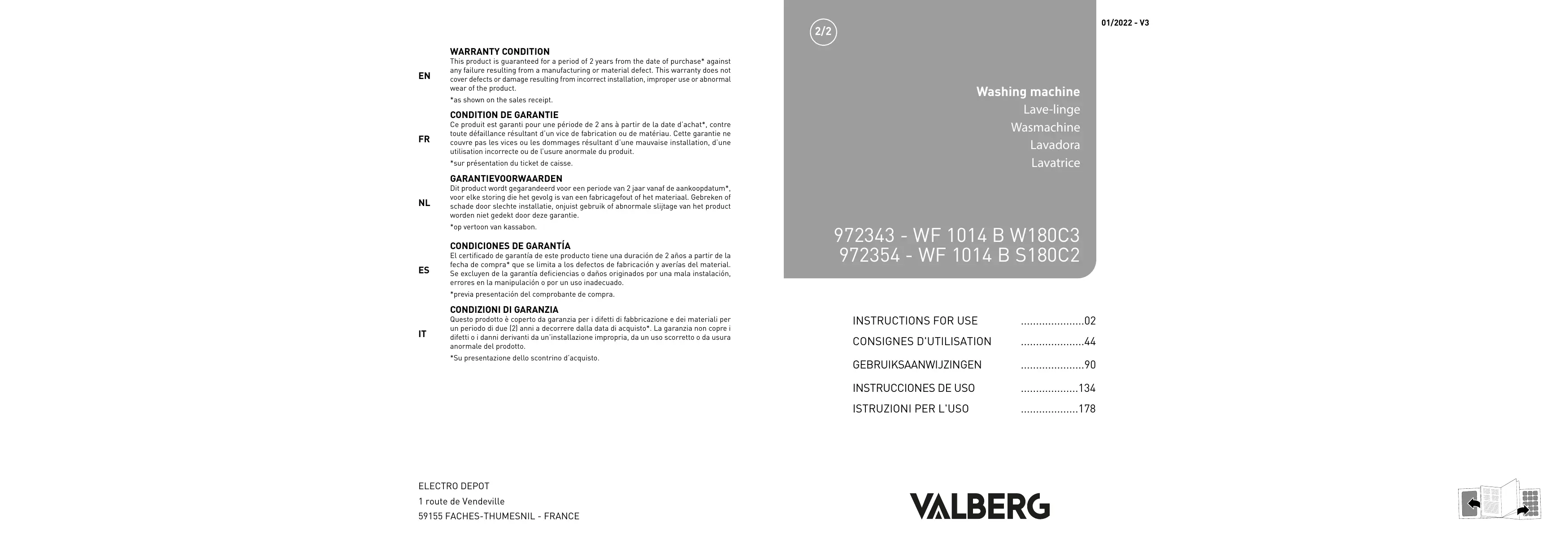 WF 1014 B AID W180C - Lave-linge VALBERG - Notice d'utilisation et mode d'emploi gratuit