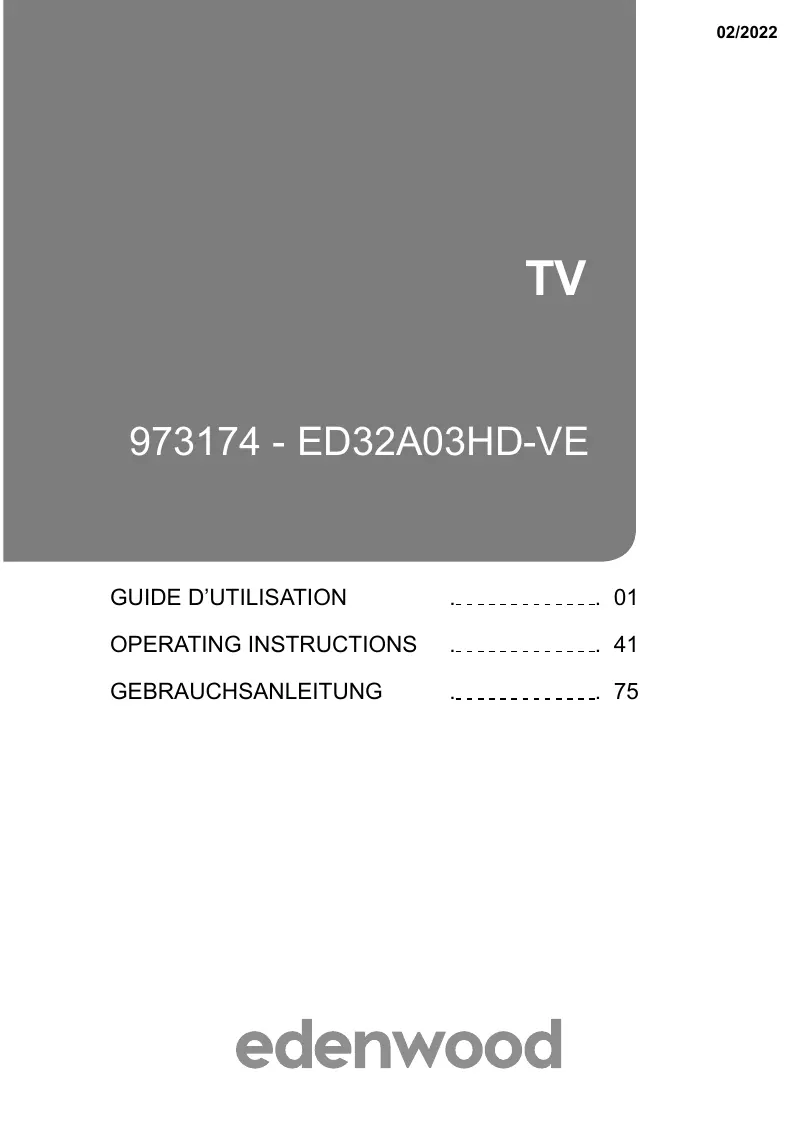 Retrouvez gratuitement la notice de l'appareil ED32A03HD-VE EDENWOOD au format PDF.