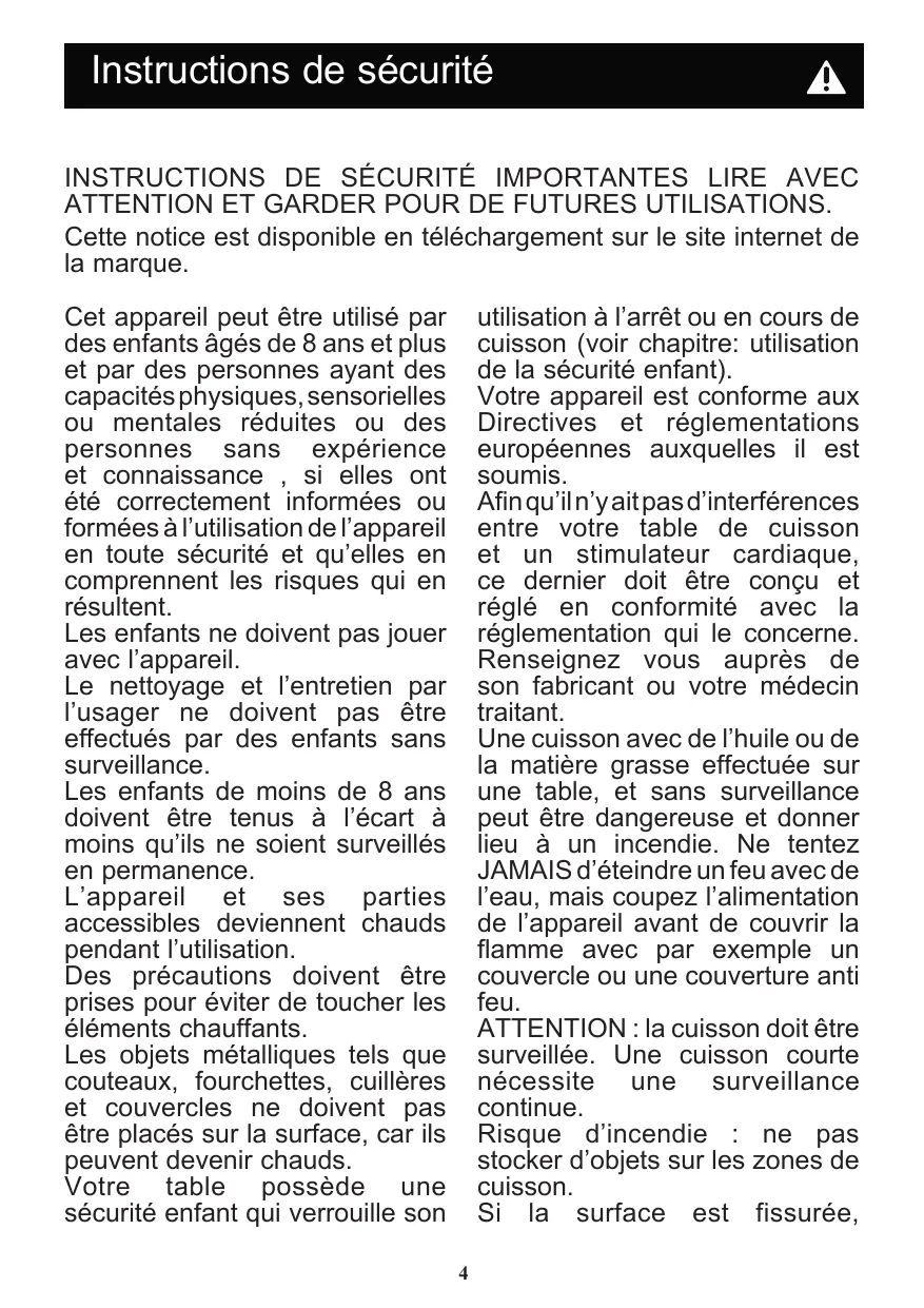 Afinqu'iln'yaitpas d'interférences entre votre table de cuisson et un stimulateur cardiaque, ce dernier doit être conçu et réglé en conformité avec la réglementation qui le concerne.