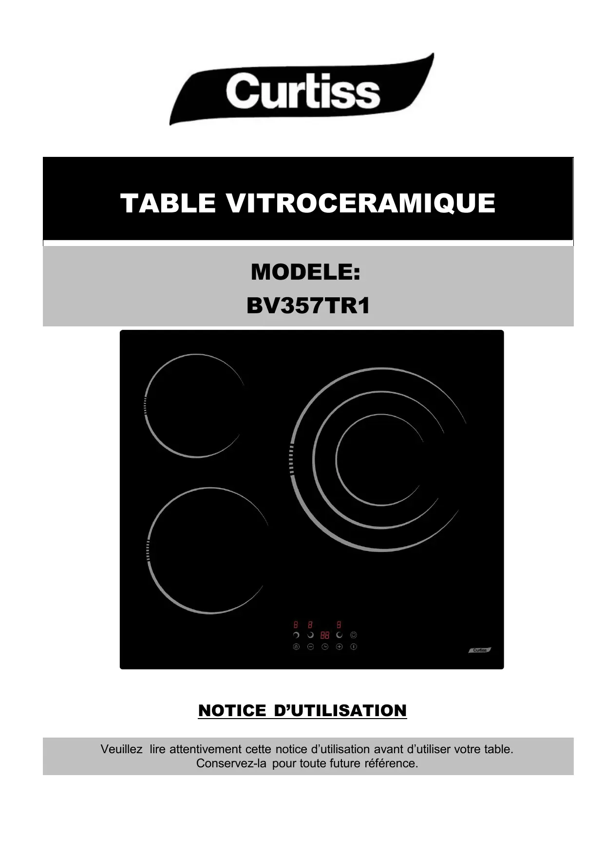 BV 357 TR1 - Table de cuisson vitrocéramique CURTISS - Notice d'utilisation et mode d'emploi gratuit