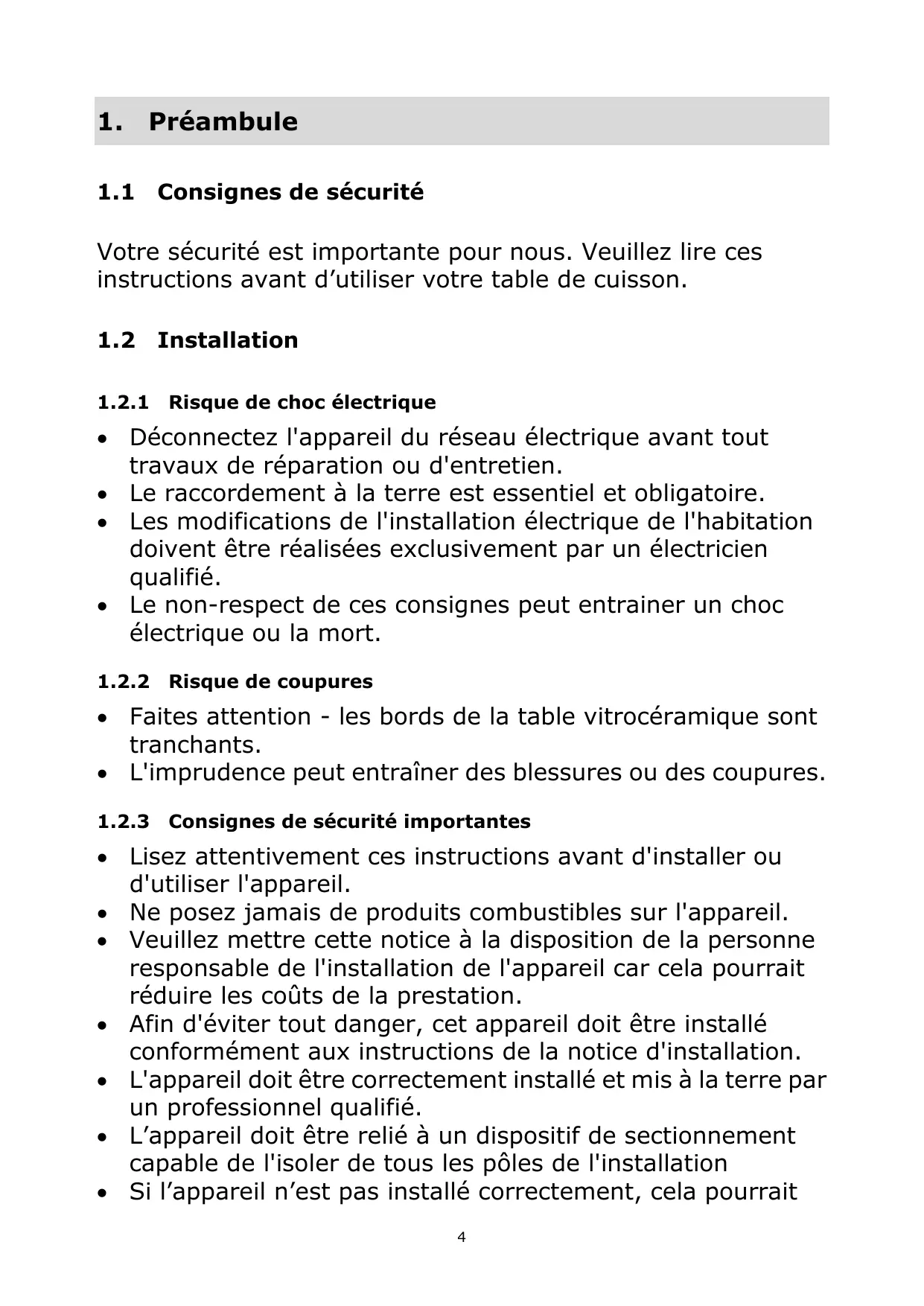 Félicitation pour l'achat de votre nouvelle table de cuisson en vitrocéramique !
