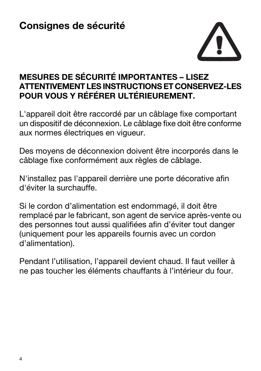 AVERTISSEMENT : les parties accessibles peuvent devenir très chaudes durant l'utilisation. Maintenez les jeunes enfants à l'écart de l’appareil.
