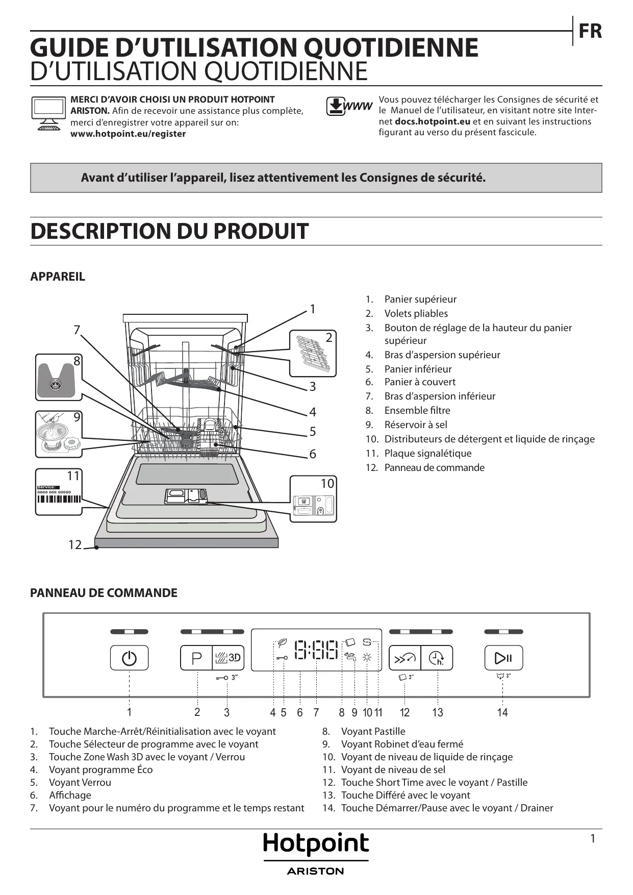 HFC3C32WX 14S42 - Lave-vaisselle HOTPOINT - Notice d'utilisation et mode d'emploi gratuit