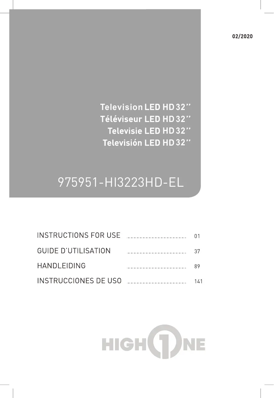 Retrouvez gratuitement la notice de l'appareil HI3223HD-EL HIGH ONE au format PDF.