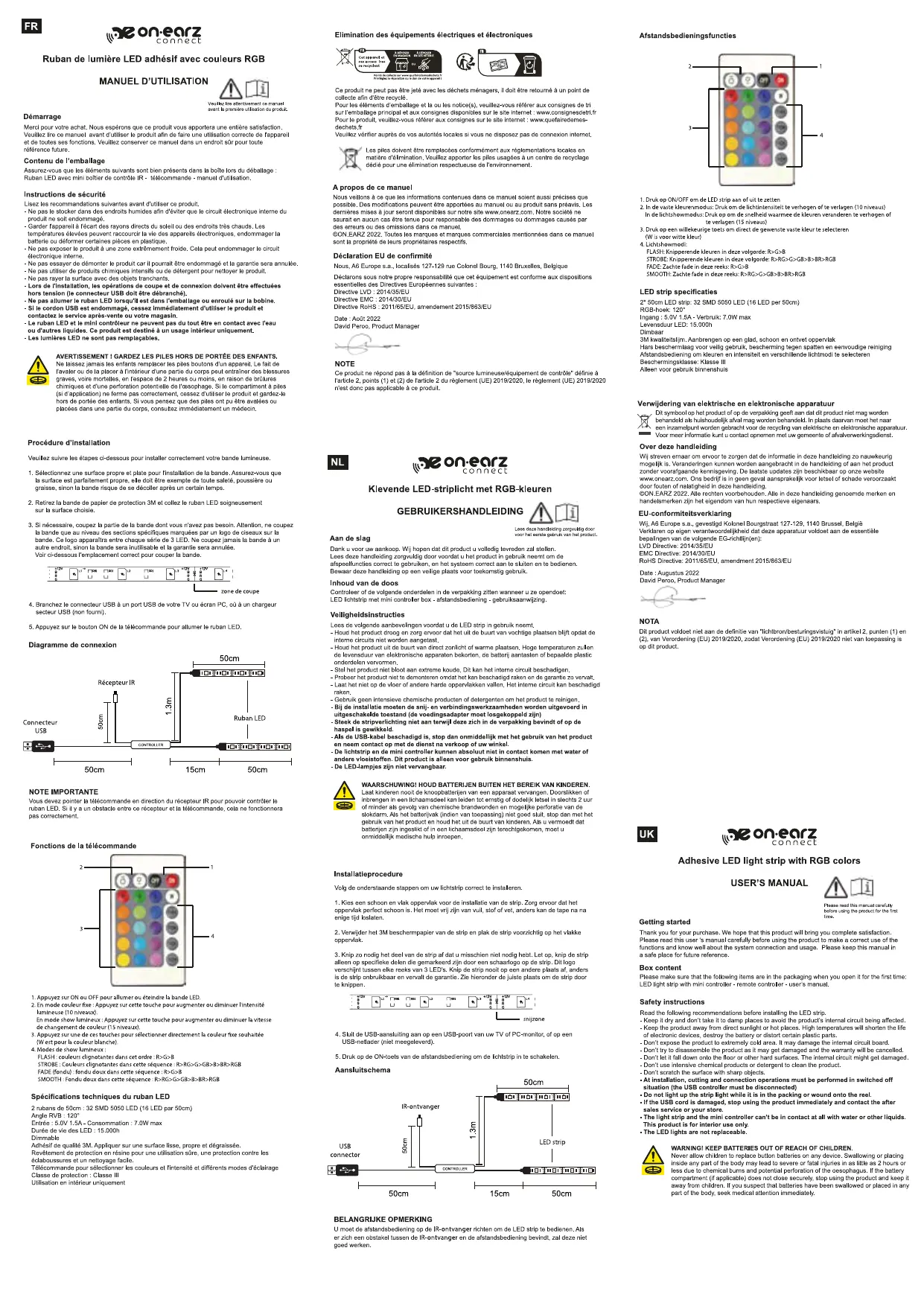 2x 50cm avec 32LED USB - Ruban LED ON EARZ - Notice d'utilisation et mode d'emploi gratuit