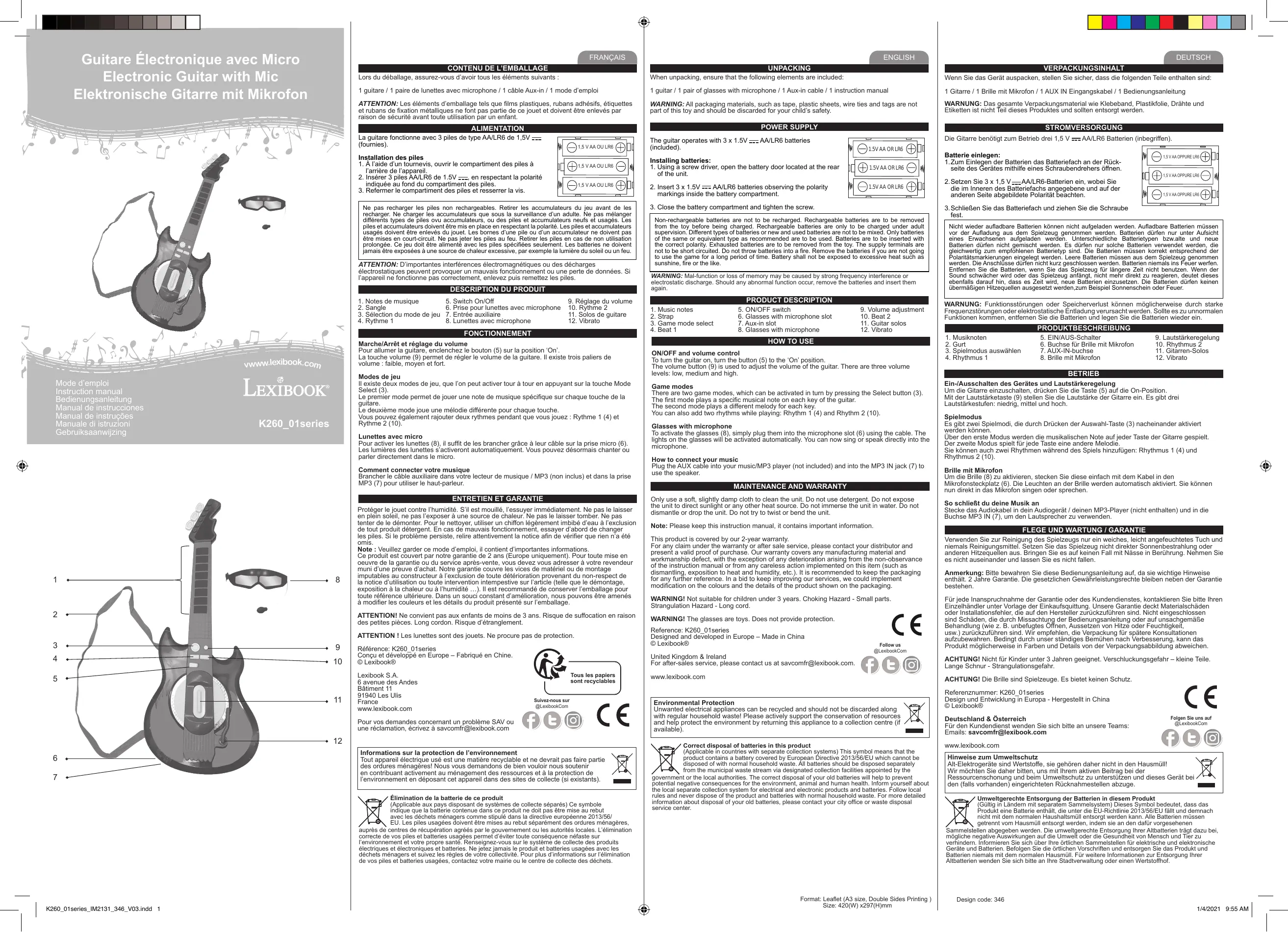 © Lexibook® Informations sur la protection de l'environnement Tout appareil électrique usé est une matière recyclable et ne devrait pas faire partie des ordures ménagères! Nous vous demandons de bien vouloir nous soutenir