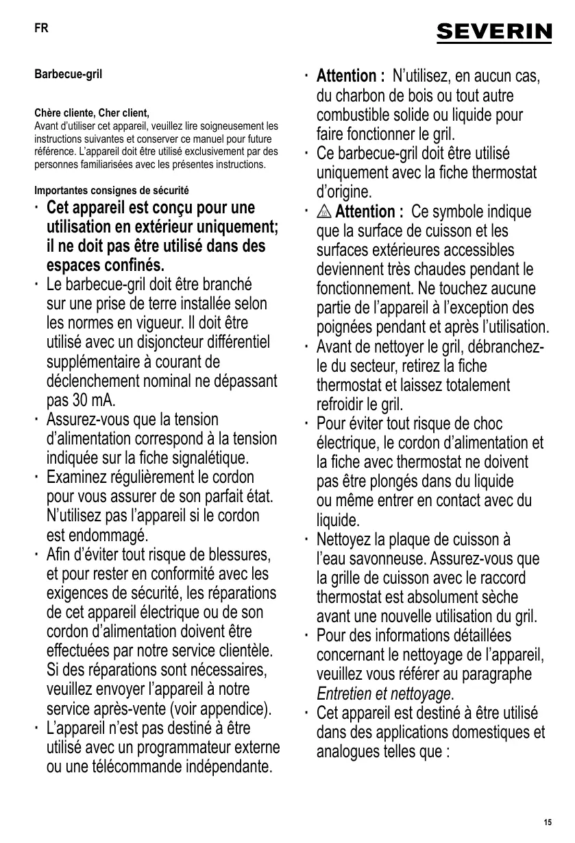 PG 8541 - Barbecue électrique SEVERIN - Notice d'utilisation et mode d'emploi gratuit