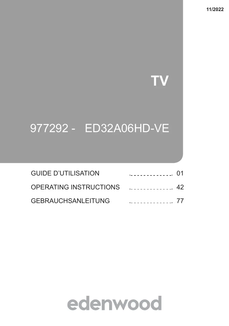 Retrouvez gratuitement la notice de l'appareil ED32A06HD-VE EDENWOOD au format PDF.