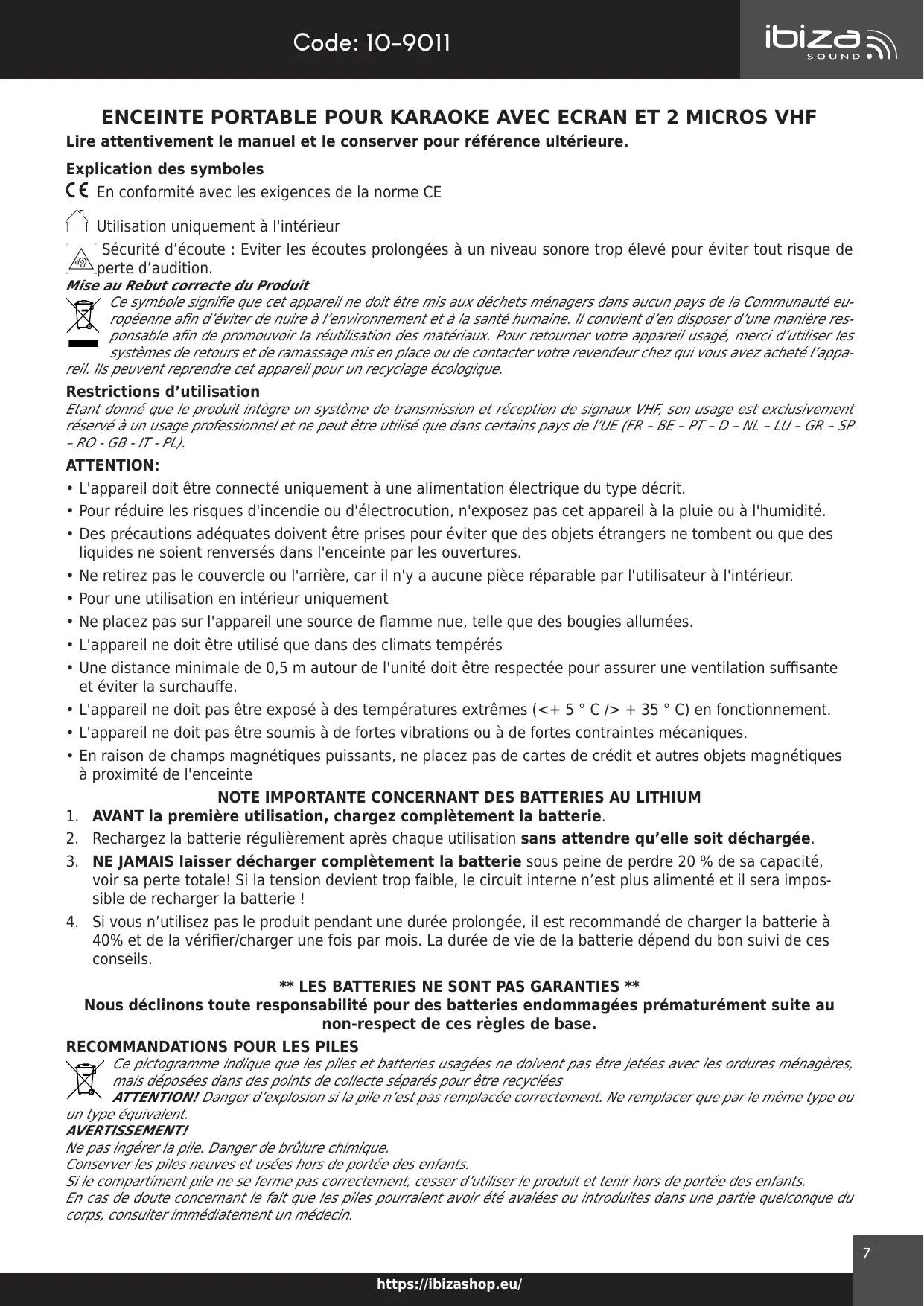 *+ LES BATTERIES NE SONT PAS GARANTIES **