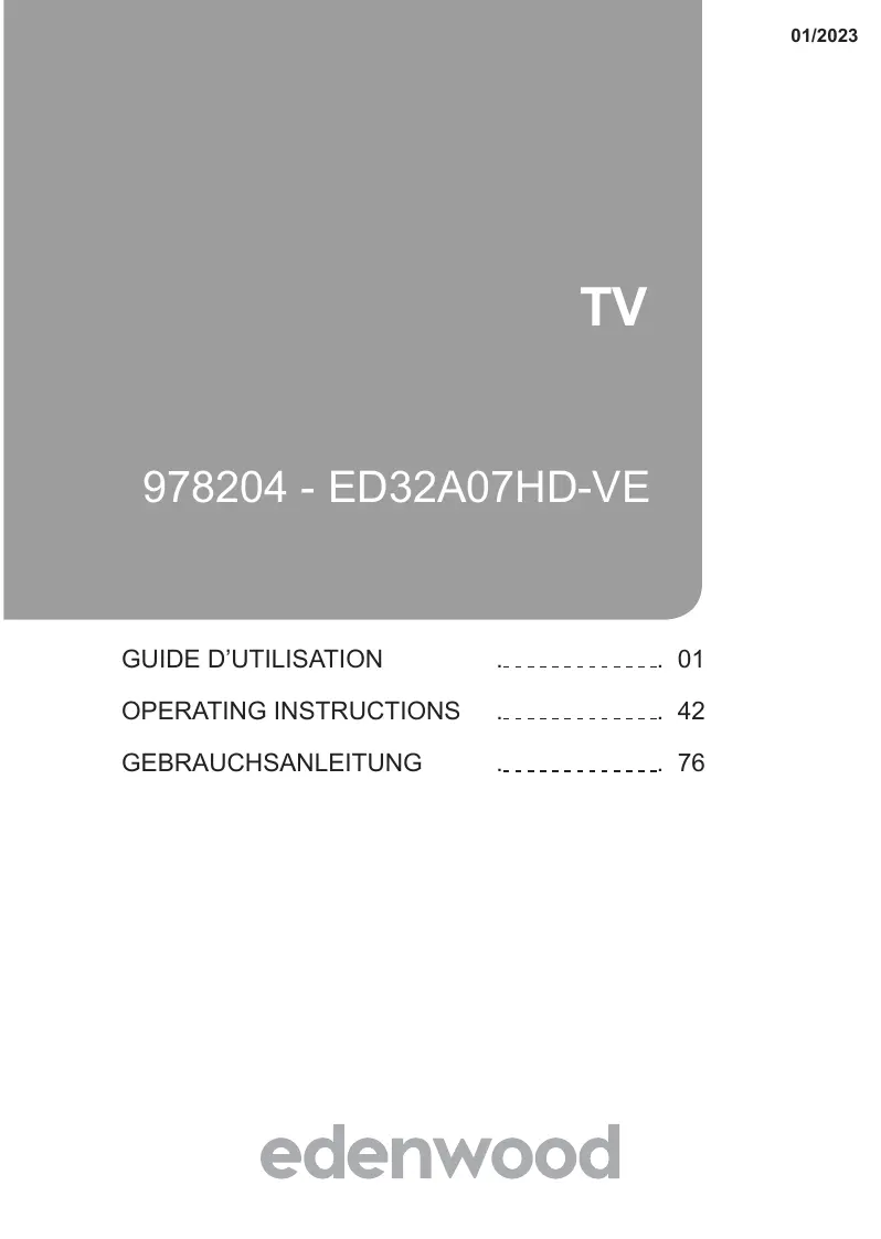 ED32A07 - TV HD EDENWOOD - Notice d'utilisation et mode d'emploi gratuit