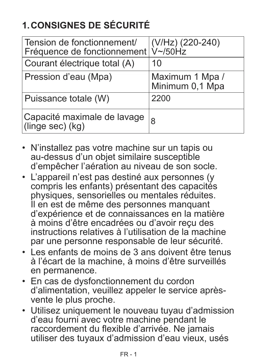 1. CONSIGNES DE SECURITÉ