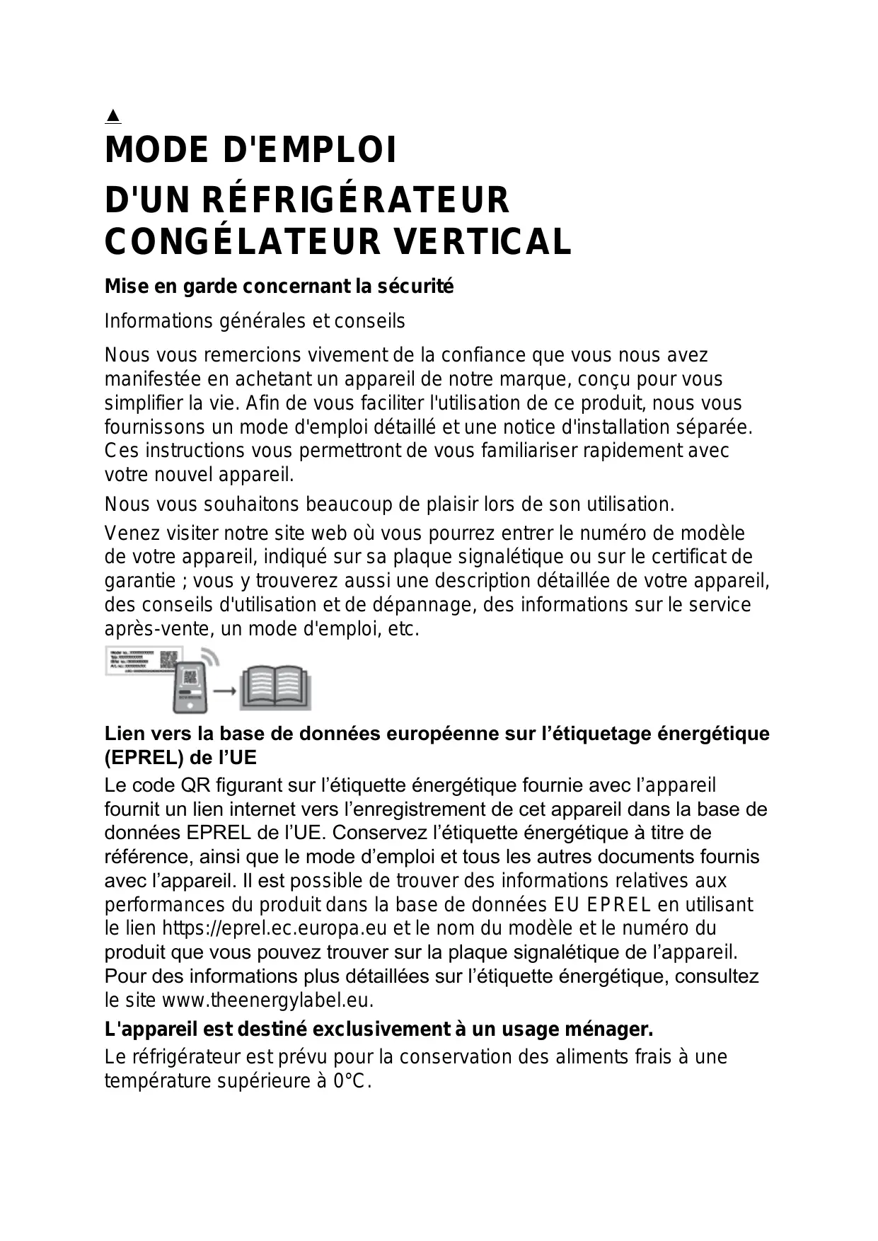 Cette notice s'applique aussi au congélateur à Froid ventilé (No Frost) avec ventilateur intégré et dégivrage automatique (uniquement sur certains modèles).