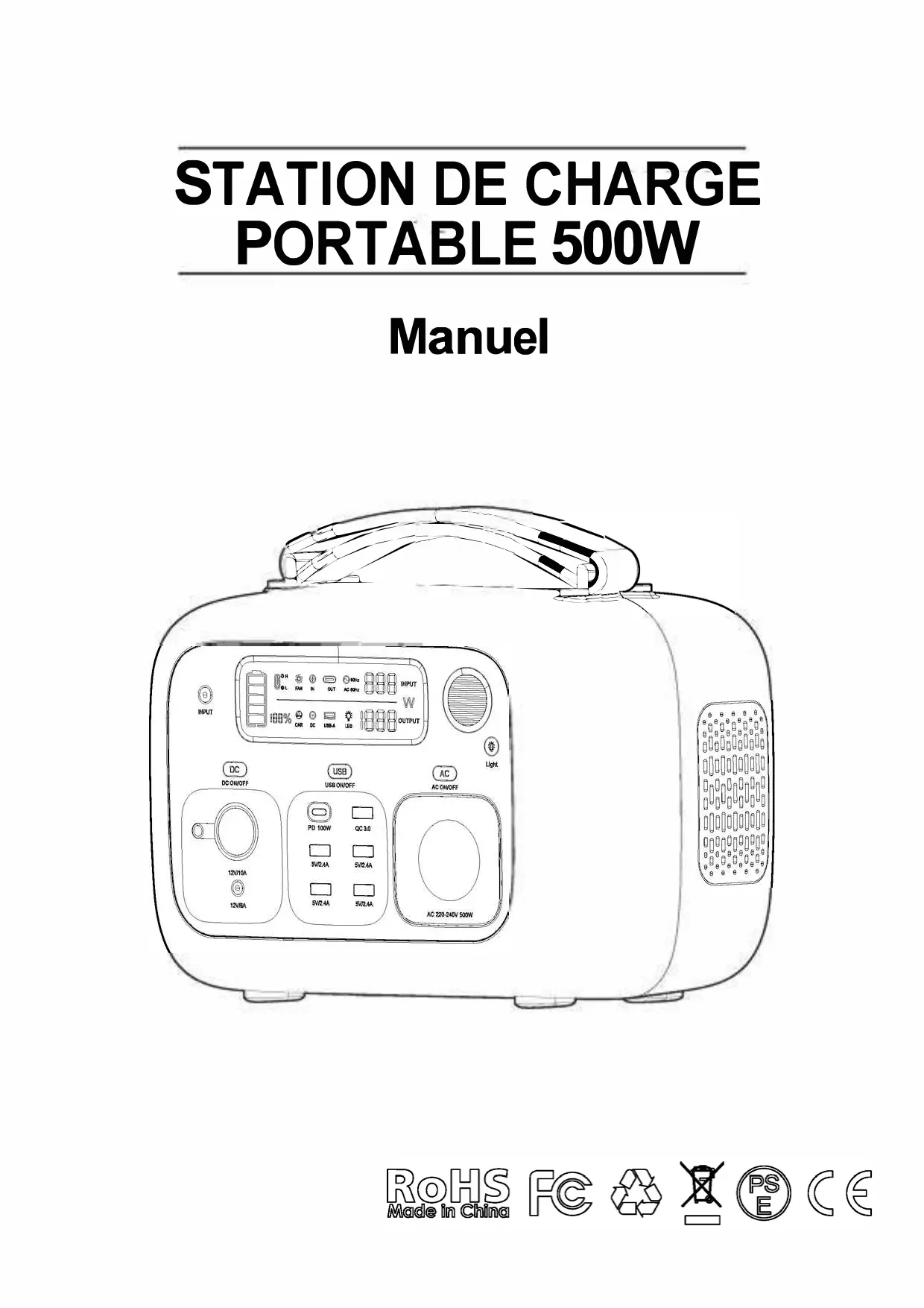 Mode de chargement port DC : k .Sortie de l'adaptateur 12-24V, le courant 1A peut être utilisé ; 2.La puissance maximale du panneau photo-voltaïque est de 150W dans un rayon de 30V. Panneaux solaires : Le temps de charge dépend de la puissance des panneaux solaires et de l'intensité de la lumière du soleil. Sortie AC 220-240V/50Hz, 500W QC3.0 5V/9V/12V (18W) USB 5Vf2.4A (4 ports USB, le courant de sortie maximal total est de 6A) Type-C 5-20V/5.0A,100W MAX (PD3.0)