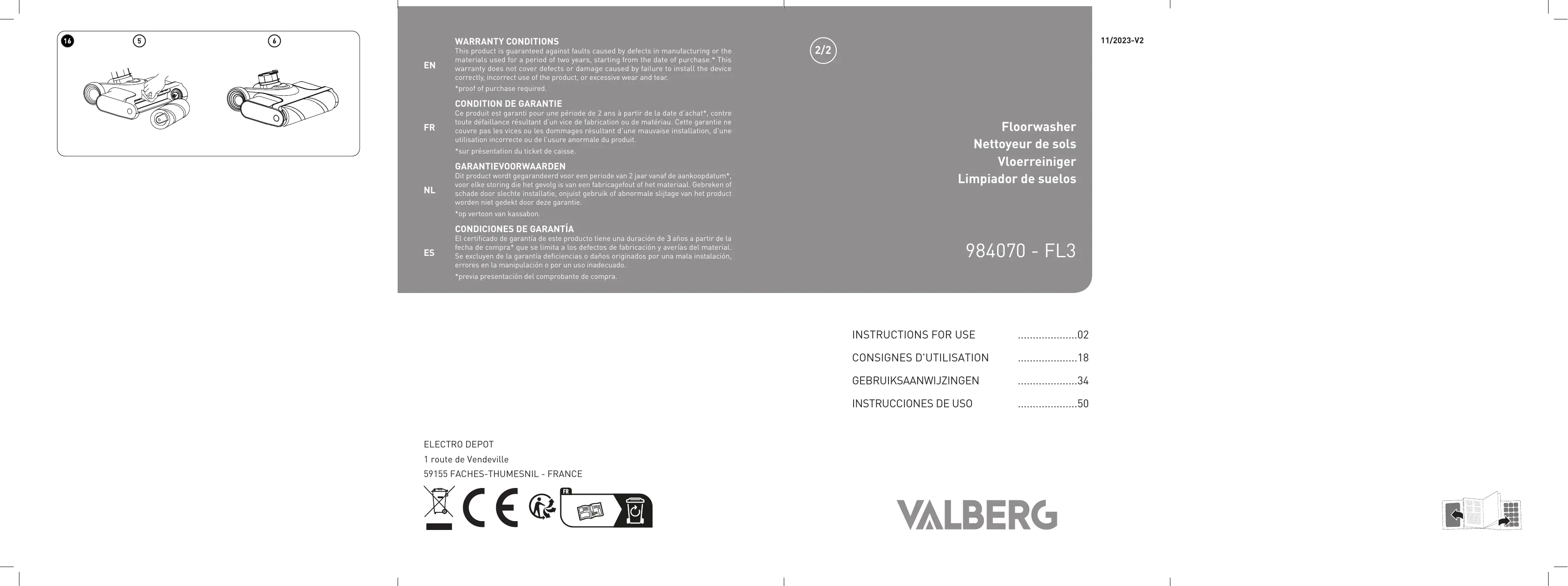 Retrouvez gratuitement la notice de l'appareil FLOORWASHER FL3 VALBERG au format PDF.