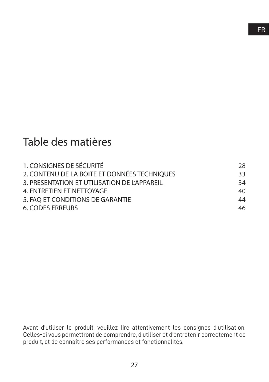 $ ou si des instructions relatives à l'utilisation de l'appareil en toute sécurité Leur ont été données et si Les risques encourus ont été appréhendés. Les enfants ne doivent pas jouer avec l'appareil. Le nettoyage et l'entretien par l'usager ne doivent pas être effectués par des enfants sans surveillance. IL en va de la responsabilité des parents et convient de ne jamais laisser un enfant sans surveillance utiliser cet appareil.
