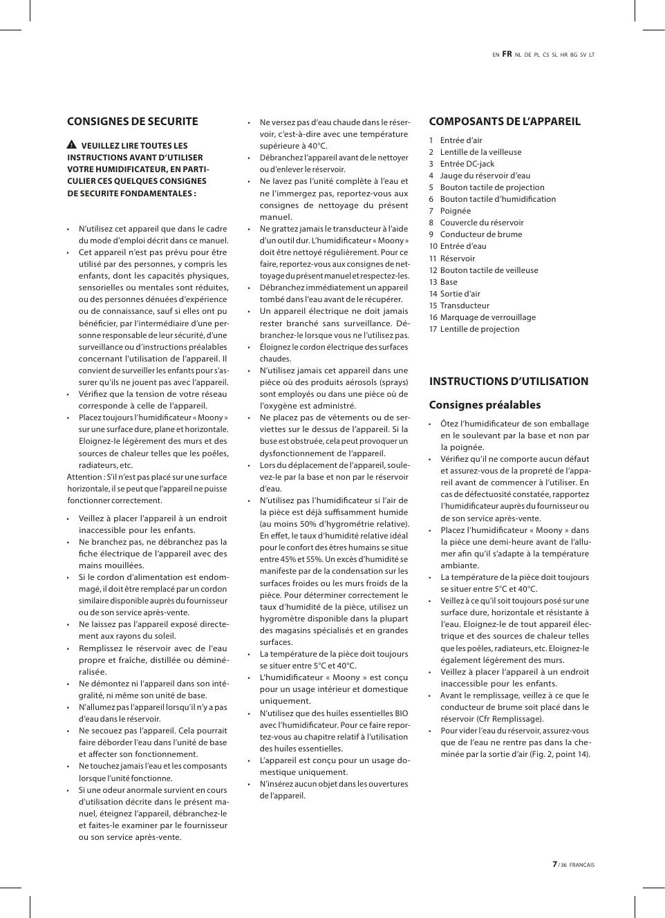 3 en 1 MOONY - Humidificateur LANAFORM - Notice d'utilisation et mode d'emploi gratuit