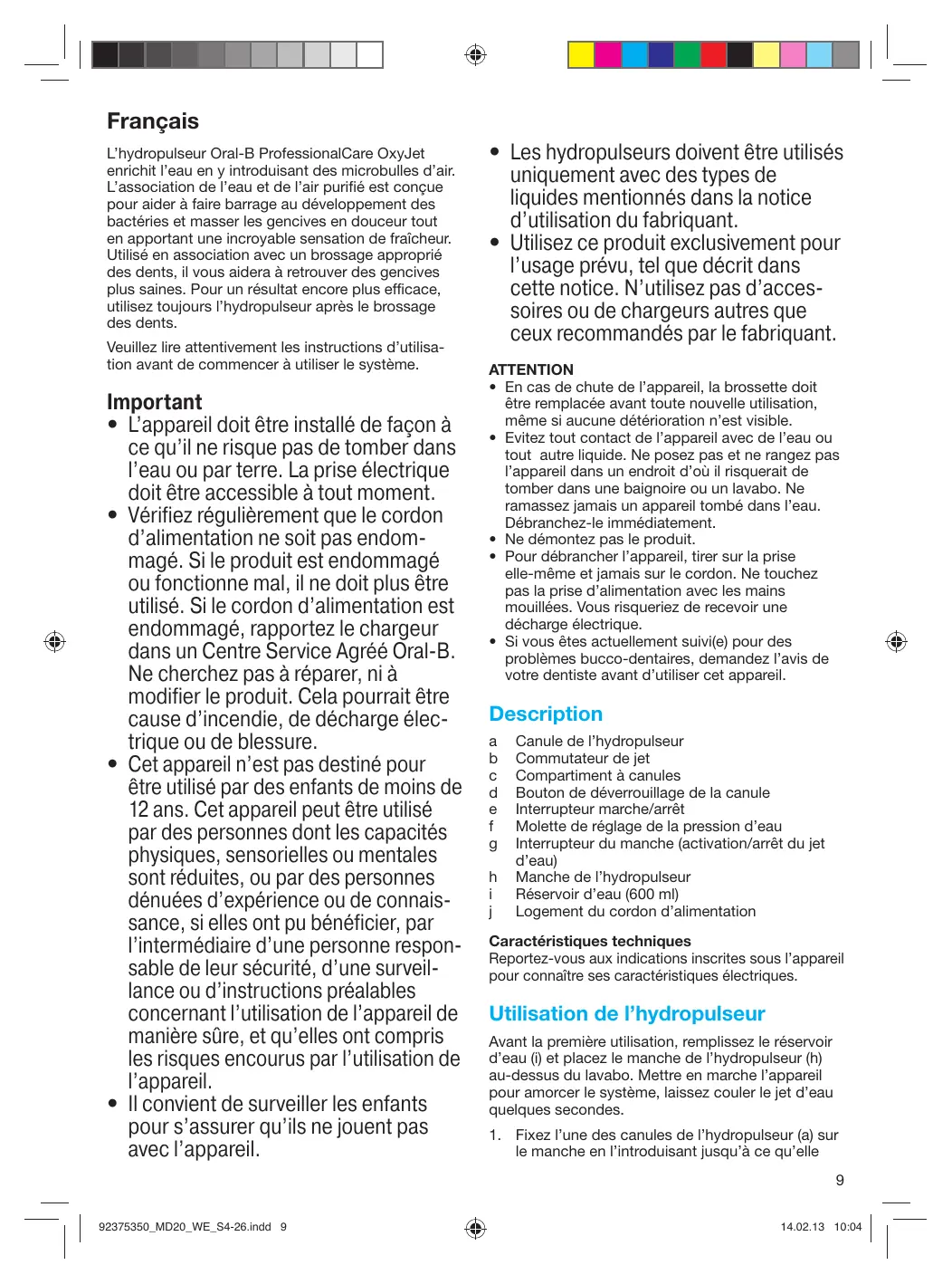 | Type de produit | Hydropulseur ORAL-B OXYJET |