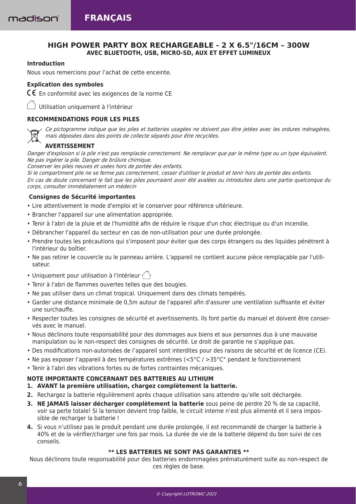 MAD-ASTRAL300 - Enceinte MADISON - Notice d'utilisation et mode d'emploi gratuit