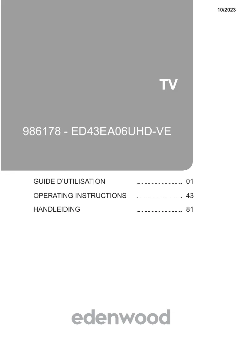 Retrouvez gratuitement la notice de l'appareil ED43EA06UHD-VE EDENWOOD au format PDF.