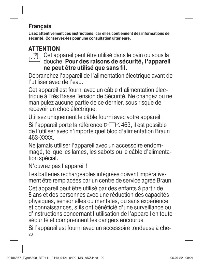 BT9420 - Tondeuse électrique BRAUN - Notice d'utilisation et mode d'emploi gratuit