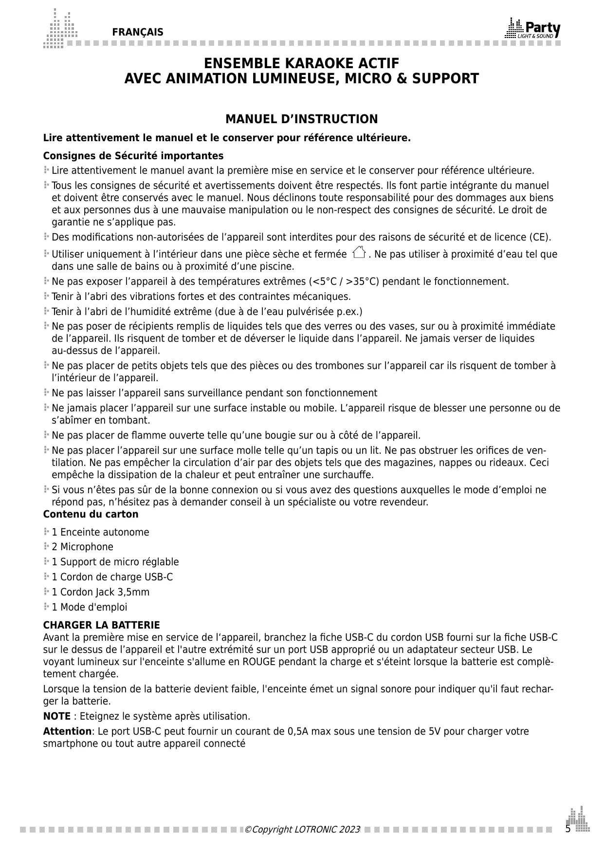 Retrouvez gratuitement la notice de l'appareil 10-9031PLS PARTY LIGHT&SOUND au format PDF.