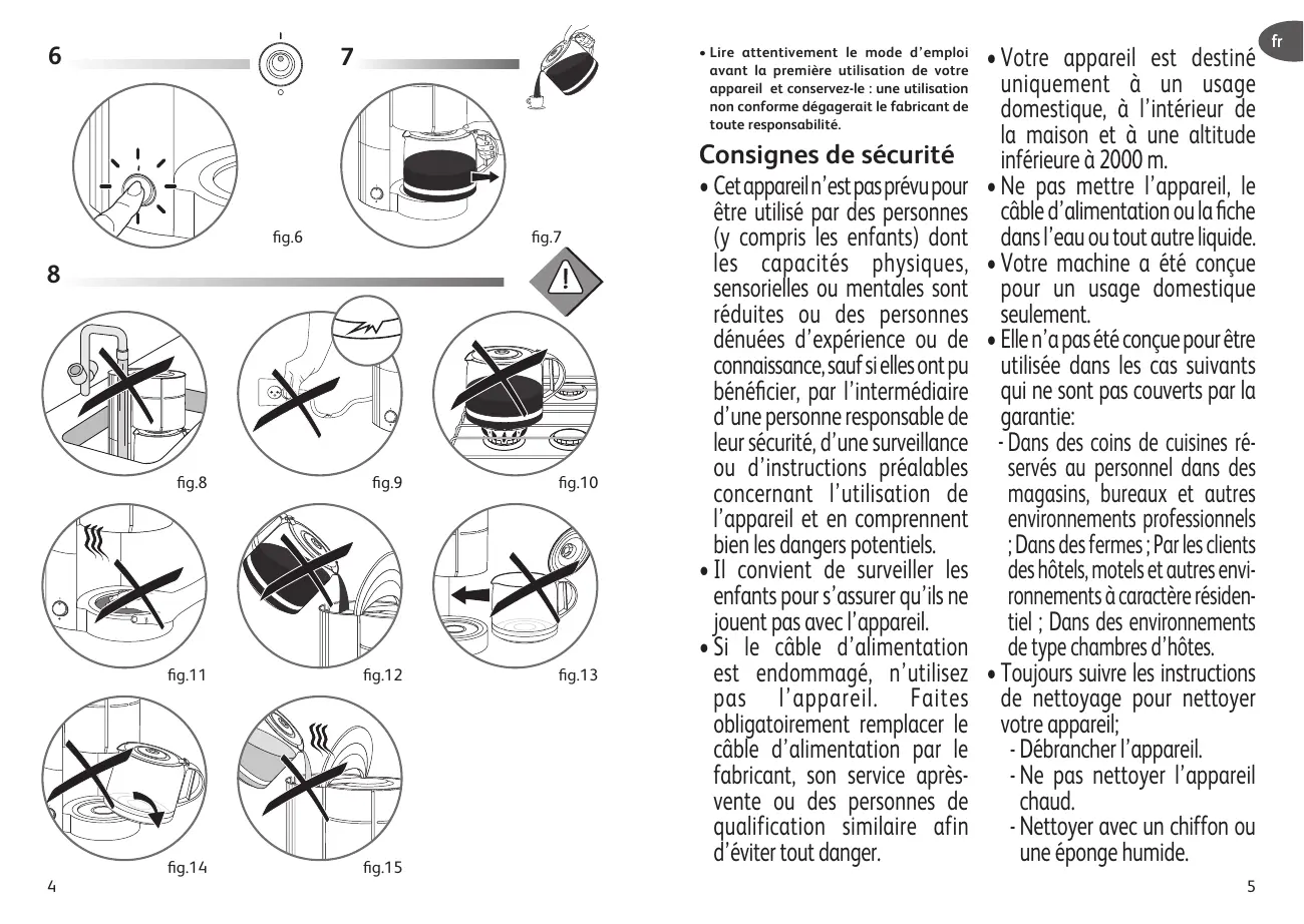 Votre appareil est destiné uniquement à un usage domestique, à l'intérieur de la maison et à une altitude inférieure à 2000 m.