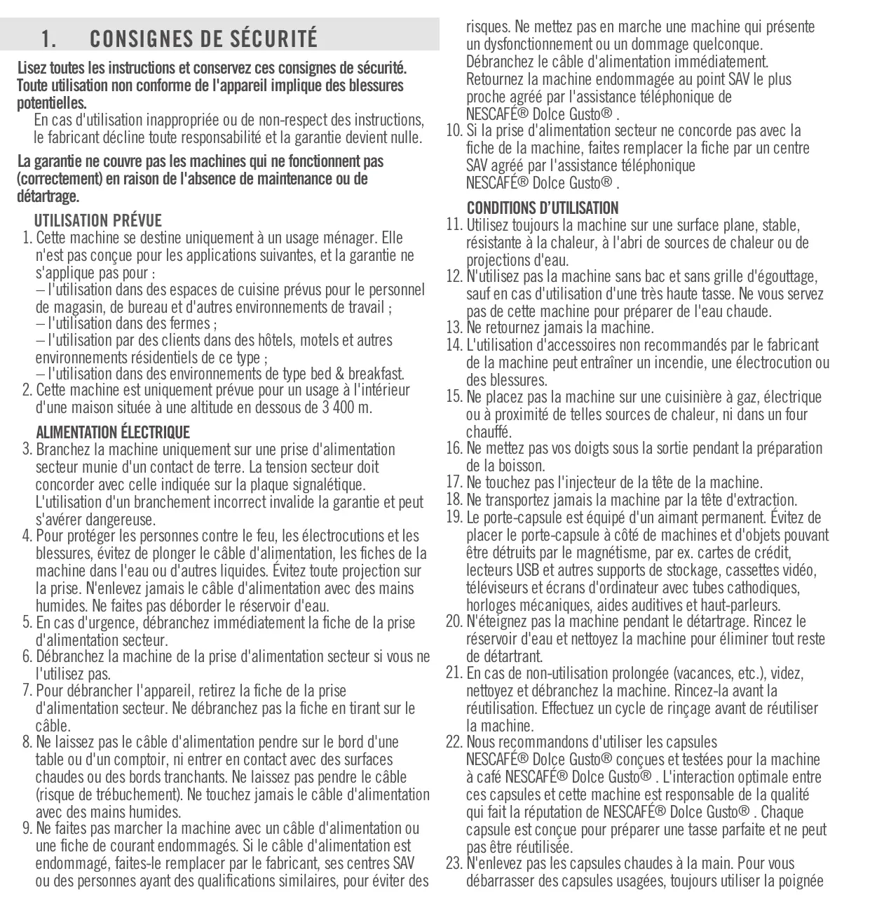 NESCAFÉ® Dolce Gusto® . Ne désassemblez pas la machine et ne mettez rien dans les ouvertures.