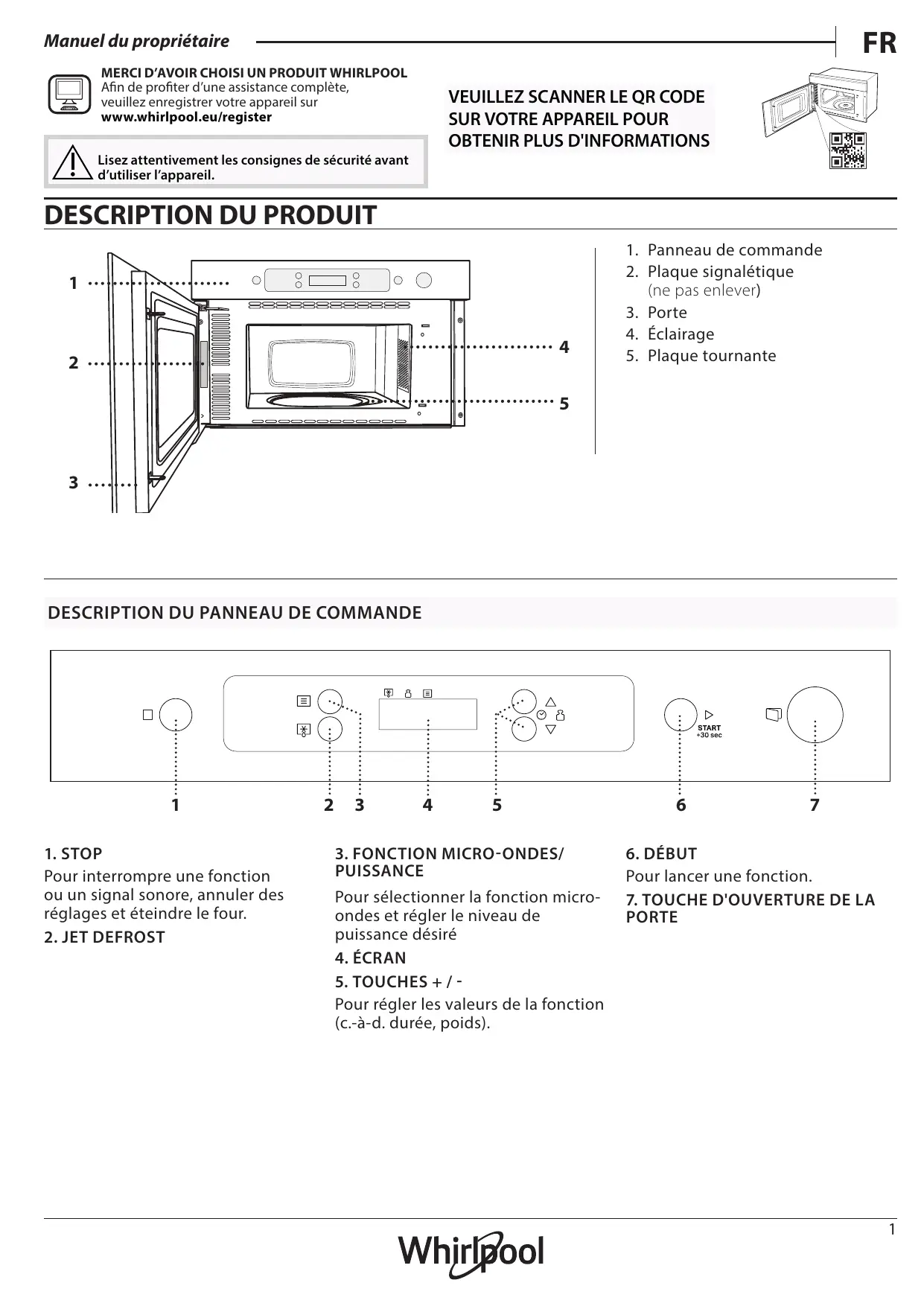 MBNA900X - Micro-ondes encastrable WHIRLPOOL - Notice d'utilisation et mode d'emploi gratuit