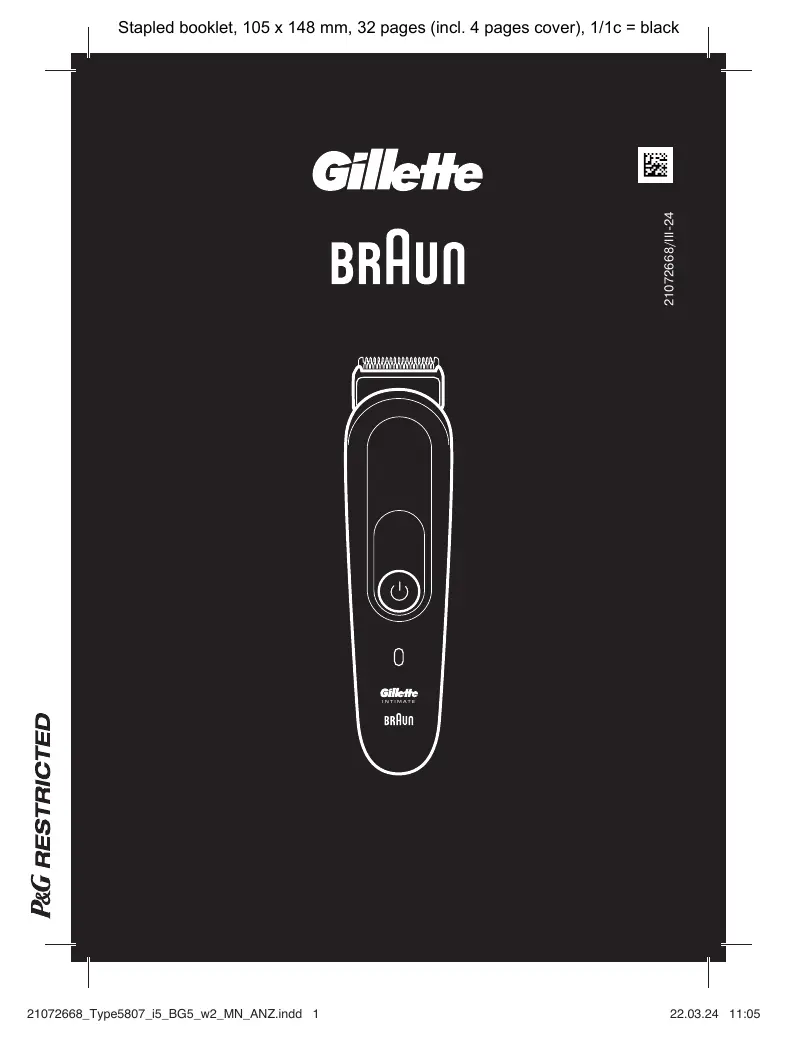 Retrouvez gratuitement la notice de l'appareil Intimate Trimmer BG5 GILLETTE au format PDF.